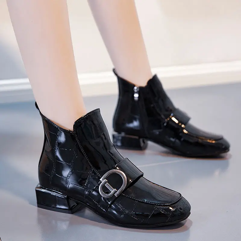 Женские ботинки на низком каблуке, Зимние ботильоны из искусственной кожи с вельветовым покрытием, с острым носком, размер 40, 2021