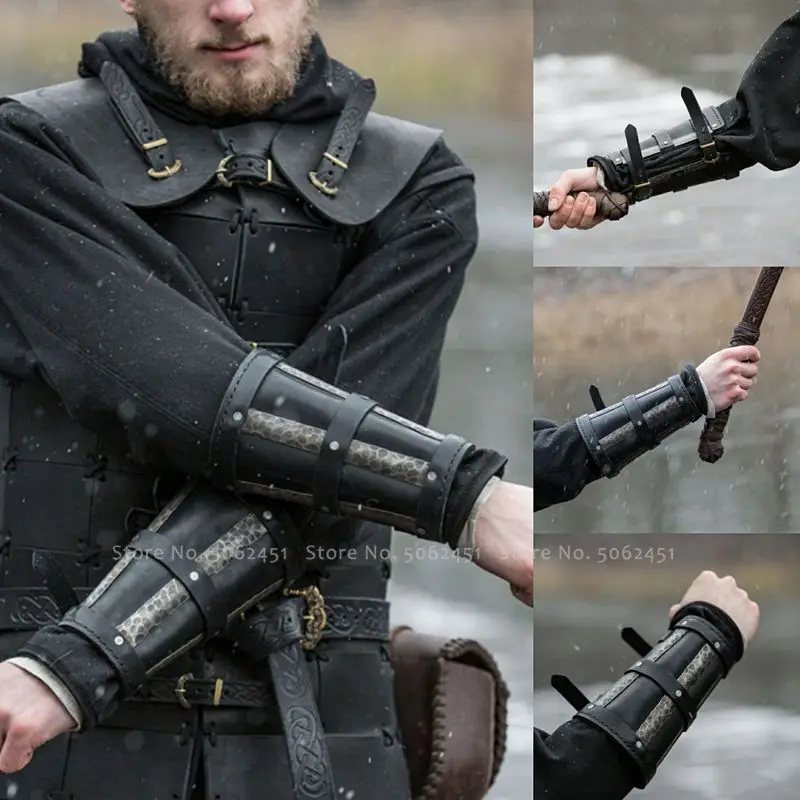Мужские нарукавники с кожаным ремешком на Хэллоуин, военный бронежилет, придворный рыцарь, принц, средневековые рукавицы на запястье, костюм для косплея