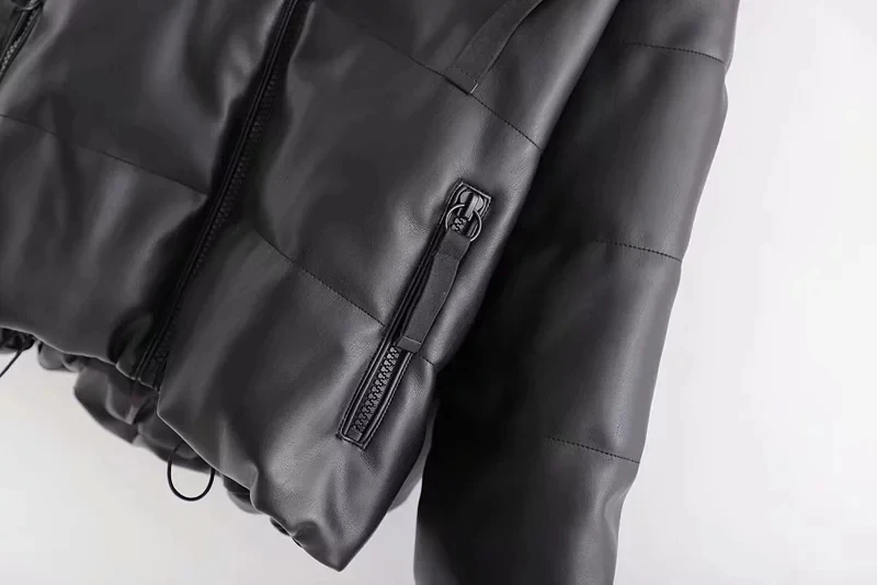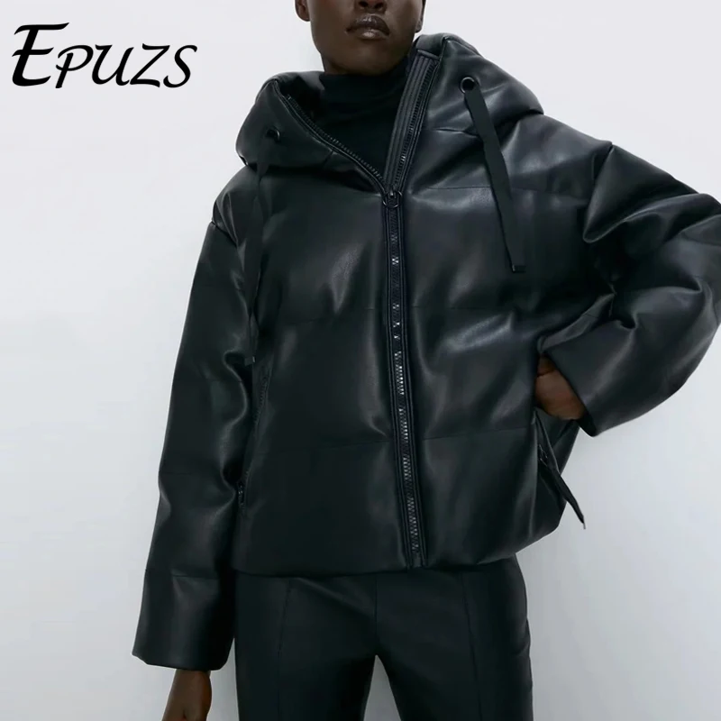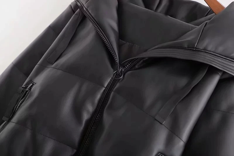 Зимняя куртка для женщин с оторочкой капюшона из искусственного кожаные куртки-парки в винтажном стиле; С капюшоном из искусственная (-ый) искусственной кожи в Корейском стиле; Теплые плотные пуховики mujer 2019 размера плюс