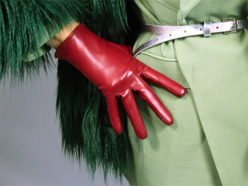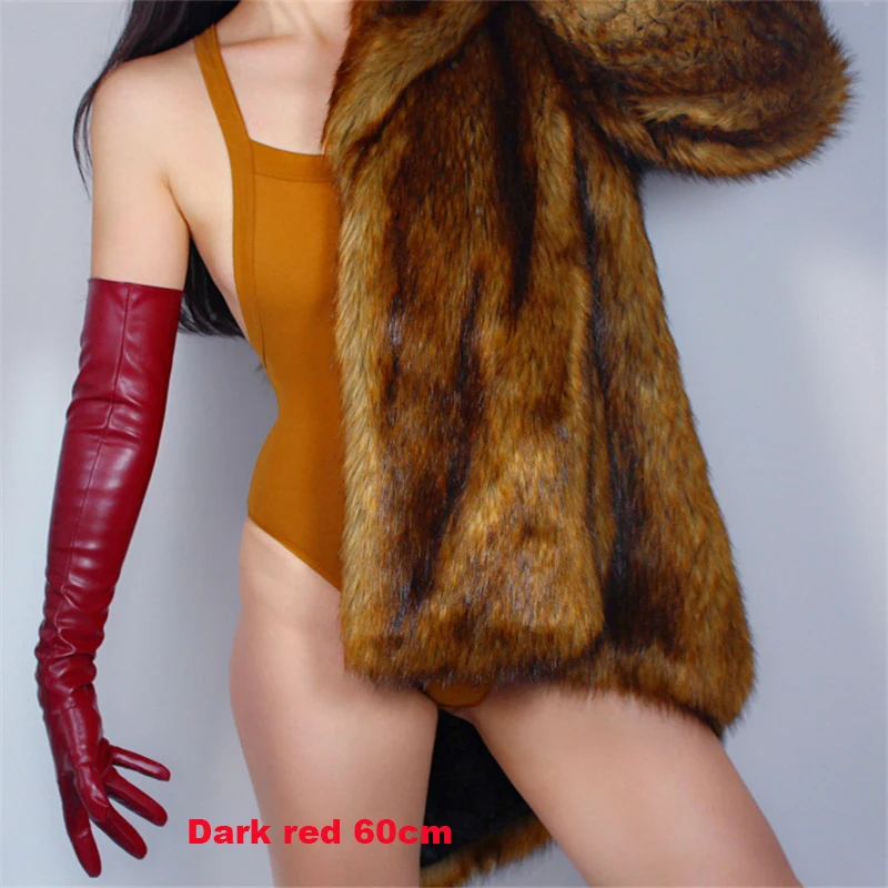 Очень длинные кожаные перчатки 70 см, искусственная кожа, имитация овчины, искусственная кожа, малиновый пух70