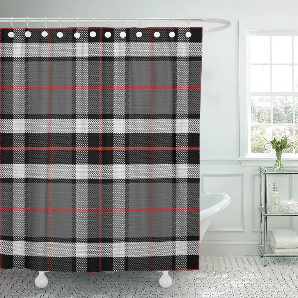 Красный плед шотландская клетка Tompson Черный, серый цвет и белый абстрактный Водонепроницаемый полиэстер ткань душ Шторы 72x72 дюйма набор