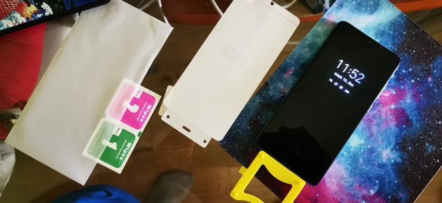 Действительно быстрая доставка, около одной недели. Но качество действительно плохое. Попробовал приклеить его 4 раза (заказал больше пленок). Пленка действительно тонкая, я сделал в ней отверстия только, стараясь приклеить ее правильно. Так много «линий» и пузырьков. Мне нравится «карта» и желтая вещь.