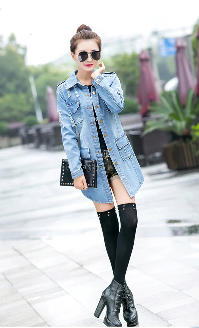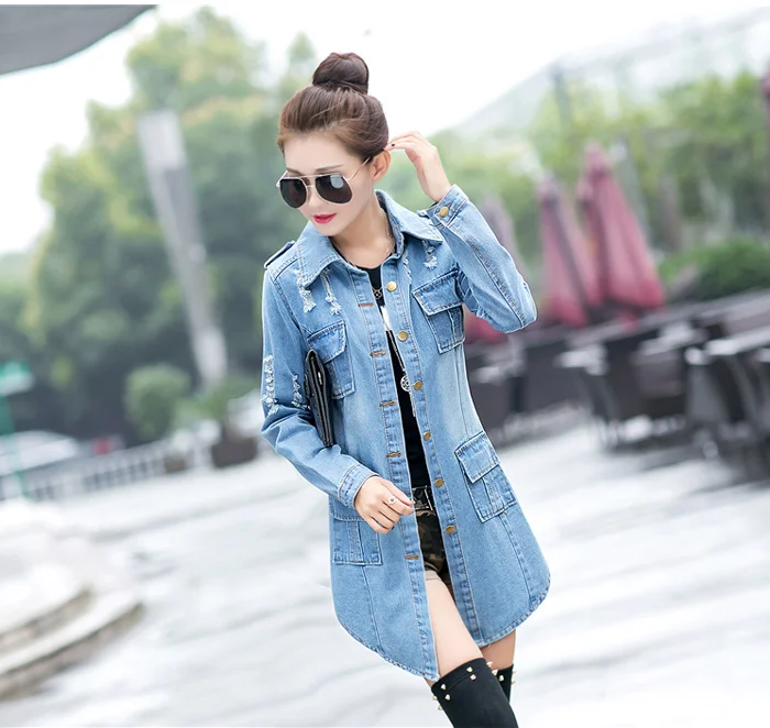 Длинная джинсовая куртка, синяя приталенная куртка из дикой джинсовой ткани, модная уличная одежда, жакет из денима с длинными рукавами и карманами, на весну