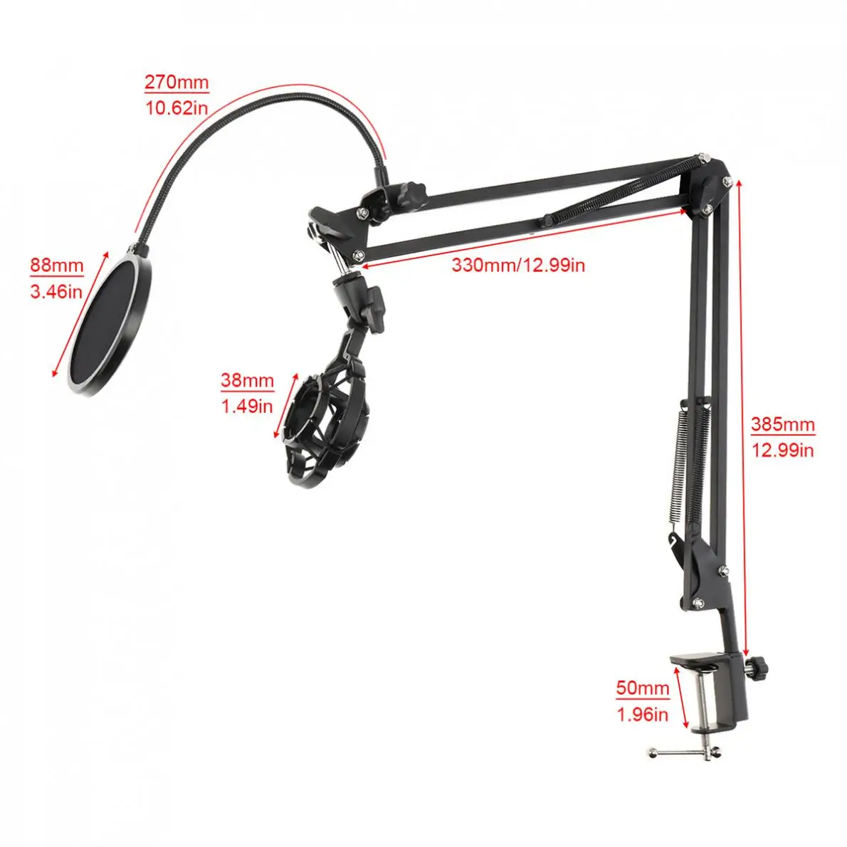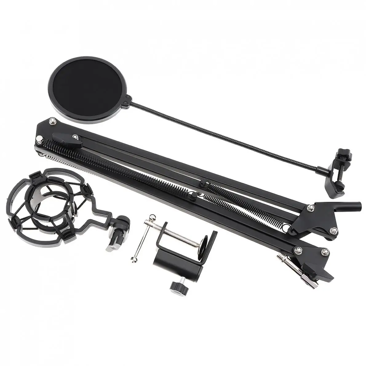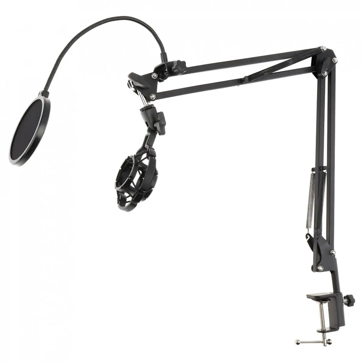 Многофункциональный противоударный Держатель для микрофона с двухслойным микрофоном, поп-фильтром и зажимом для стола, запись в прямом эфире