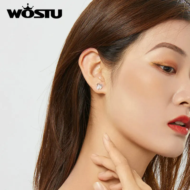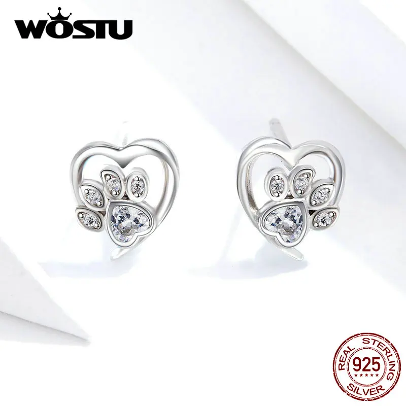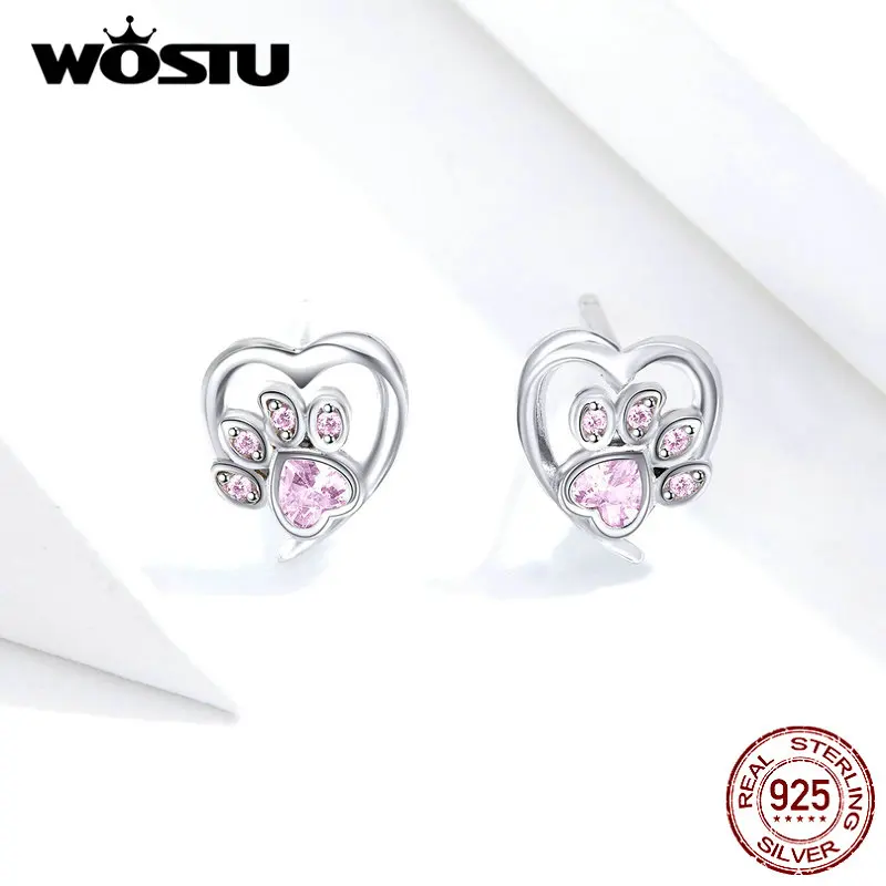 WOSTU3 цвета, Настоящее серебро 925 пробы, серьги-гвоздики в виде собачьей лапы, голубые и розовые серьги для женщин, свадебные украшения, FIE654