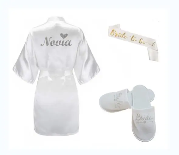 3 шт.комплект, блестящие, серебристые, Короткие тапочки для невесты, свадебная фата, Espanol, Испанское золото, атласное кимоно, женский халат