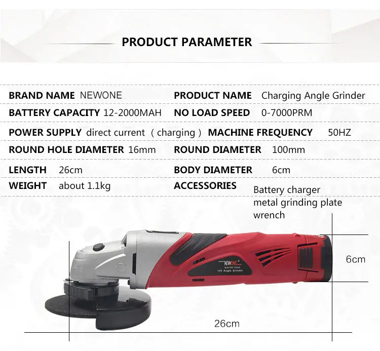 Угловая шлифовальная машина NEWONE, 12 В, с аккумулятором