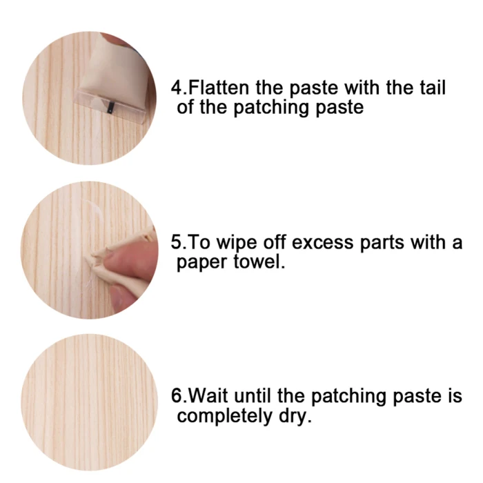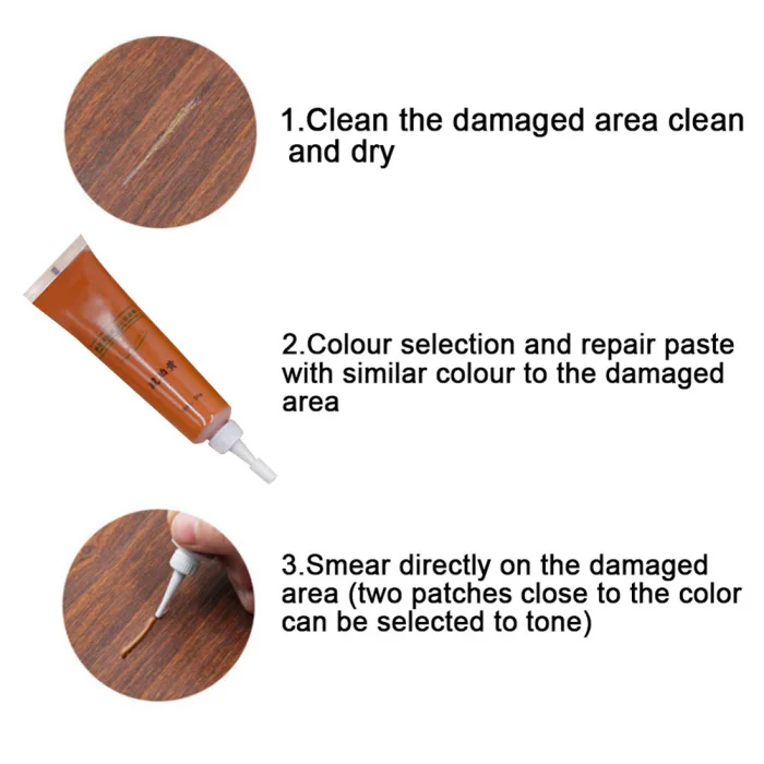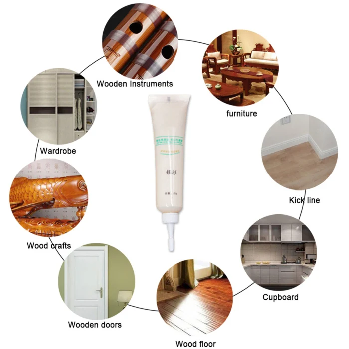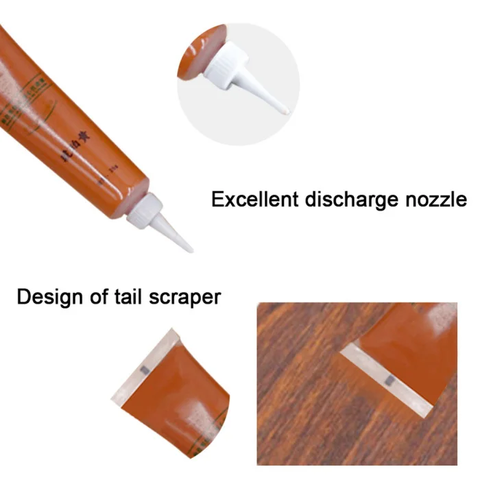 Описание: 1. Легко восстанавливать трещины и трещины на деревянной мебели и полах. 2.Портативный инструмент для ремонта, прост в использовании. 3. Широко используется в различных древесных продуктах. 4. Легко сушить, пожалуйста, затяните крышку после использования ручки. 5. Широко используется в различных деревянной мебели, ремонт кожаного освещения 6. Используется для деревянных дверей, лестниц, мебели, деревянных изделий, таких как трещины, отверстия для ногтей, трещины и столкновения, с хорошим наполнением и ремонтными эффектами