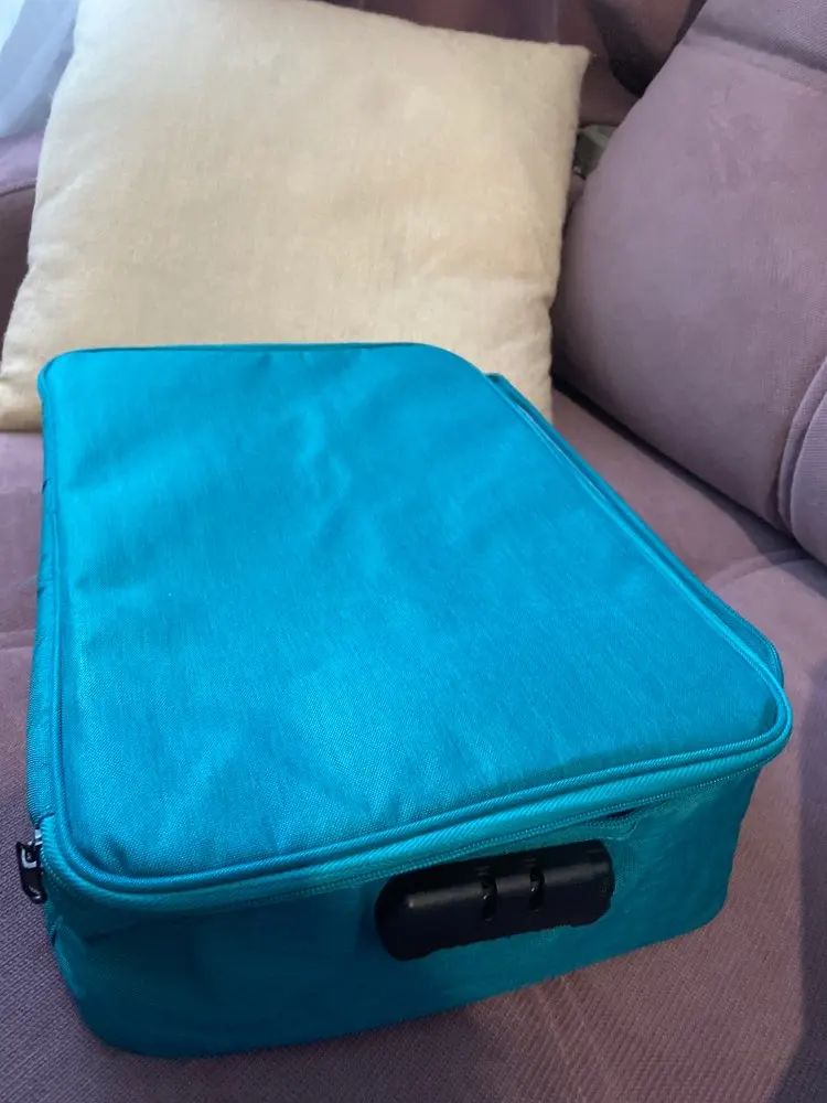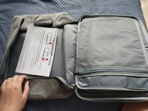 Сумки помимо цвета, отличаются ещё и расположением отсеков. У синей, например, отсек для паспорта находится не под защитой кодового замка, а выше в другом кармане.