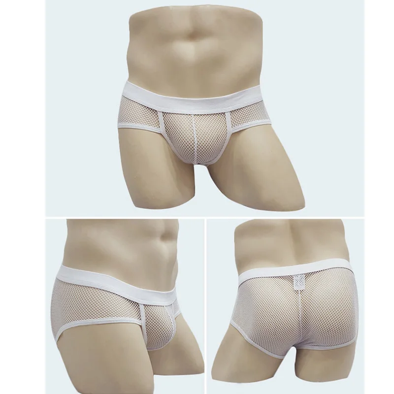 Трусы-бикини мужские, прозрачные, сетчатые, с низкой талией