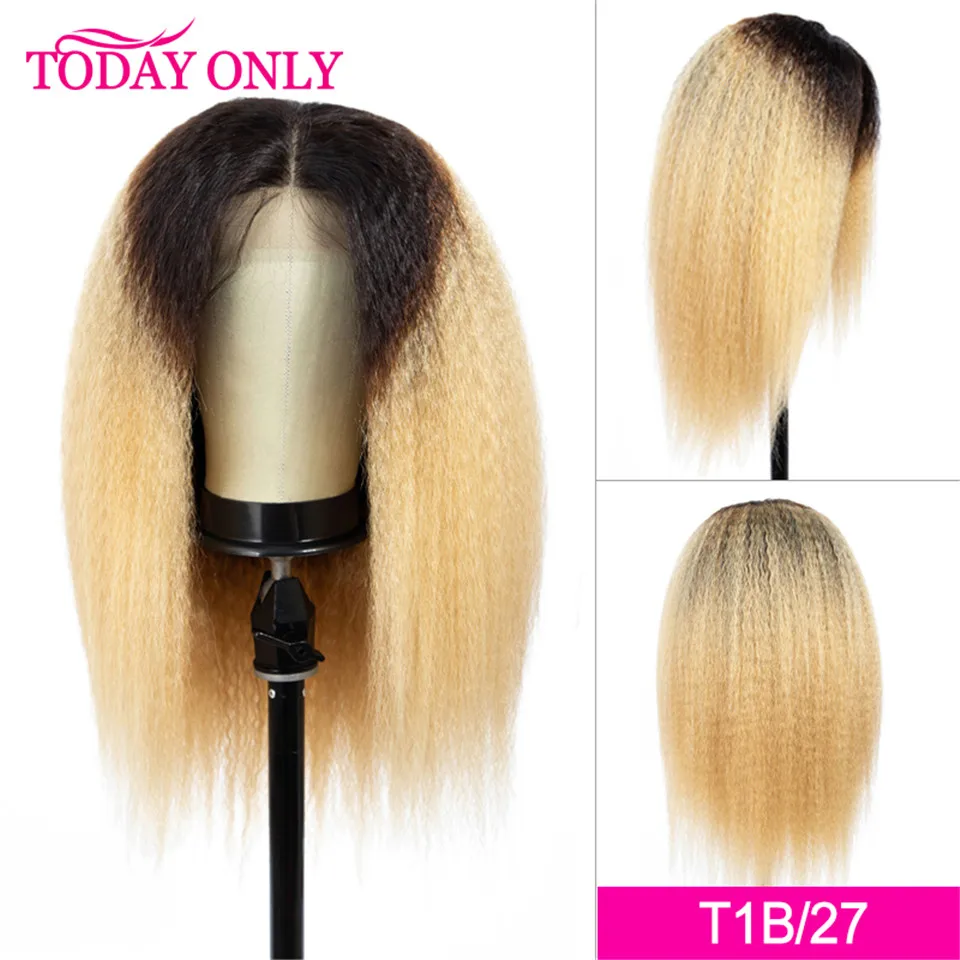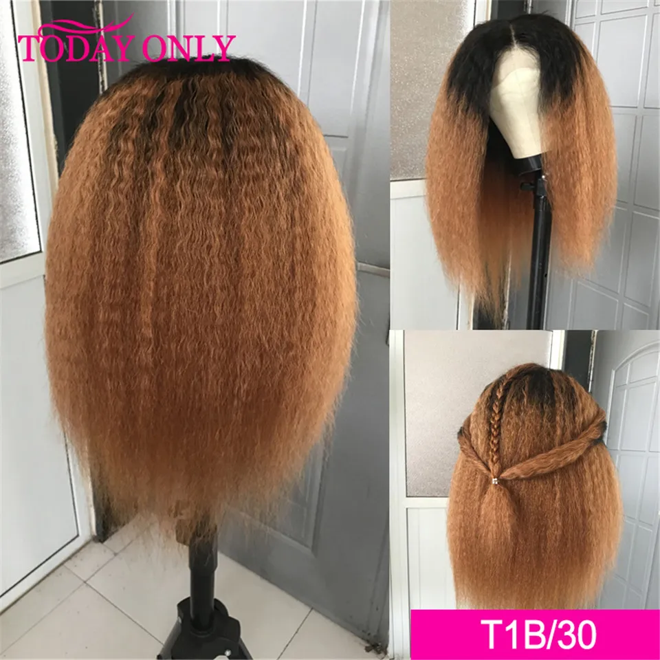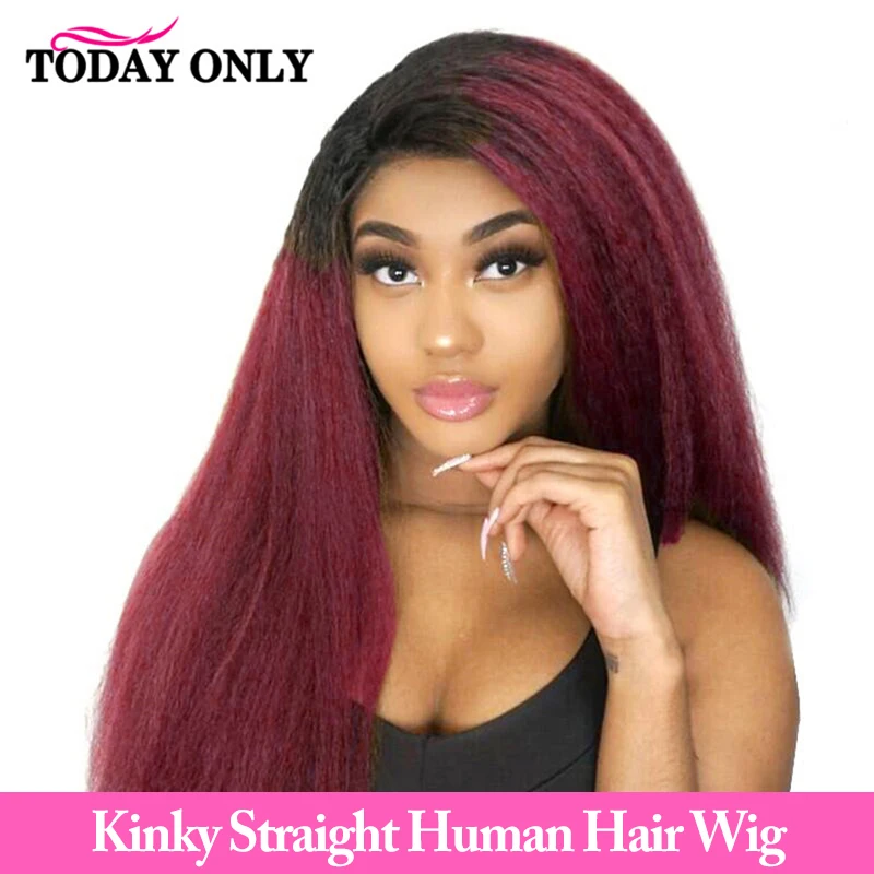 Яки кудрявый прямой парик бразильские кружевные передние человеческие волосы парики для женщин 150% 180% Омбре человеческие волосы парики сорванные 1b/27 1b/бордовый