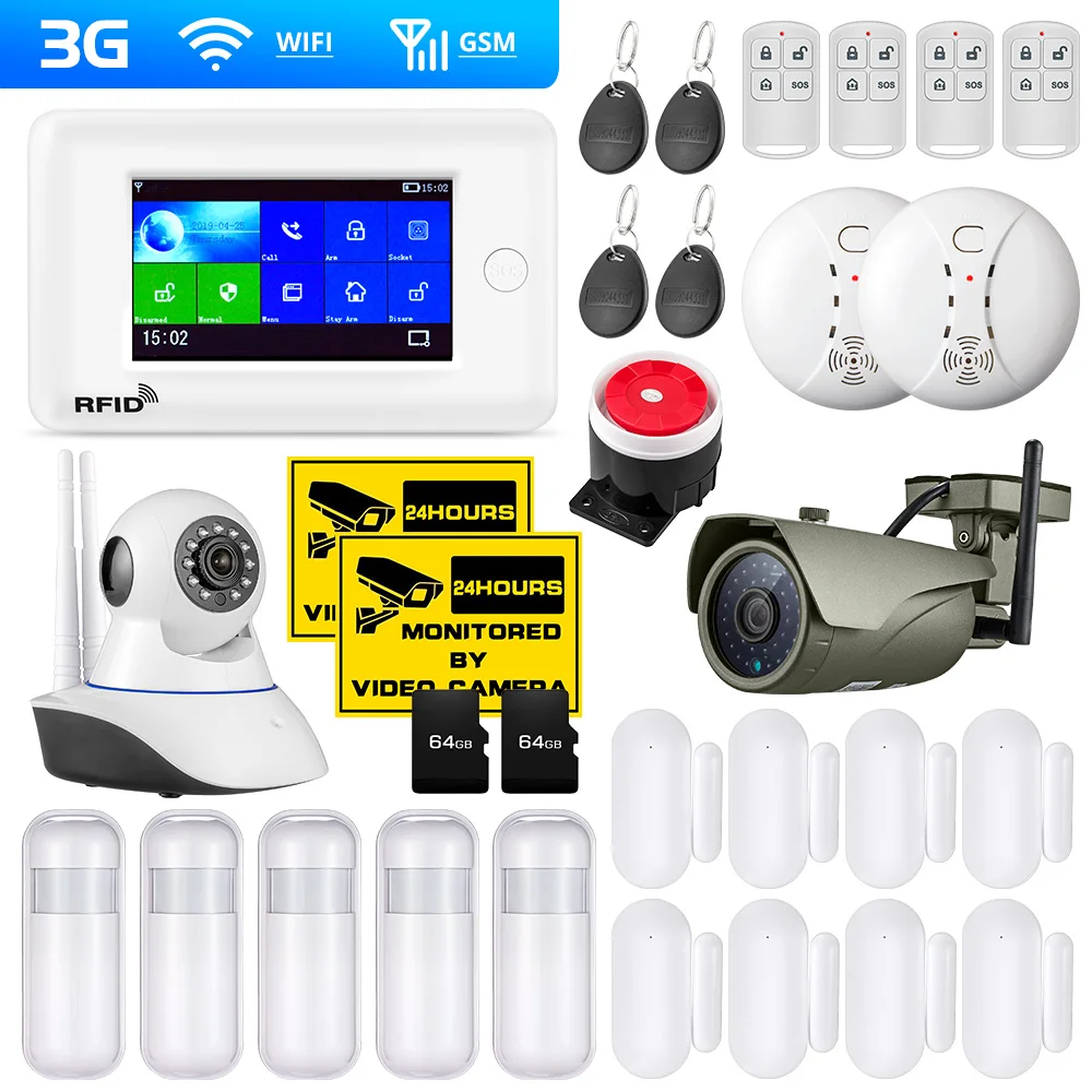IP-камера PG106, 3G, GSM, wi-fi домашняя система охранной сигнализации, поддержка приложения, RFID-карта, наружная камера, датчик дыма, Сигнализация Движения