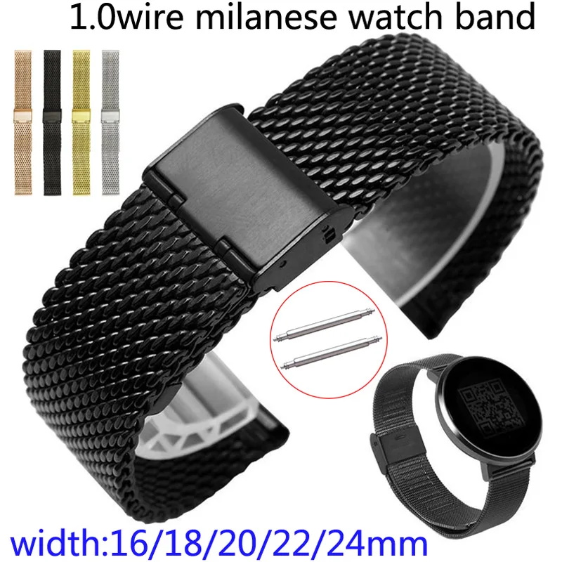 Ремешок для часов 16 мм 18 мм 20 мм 22 мм 24 мм Миланская Петля из нержавеющей стали, сменный ремешок для часов, 1 проволочный браслет на запястье с булавками