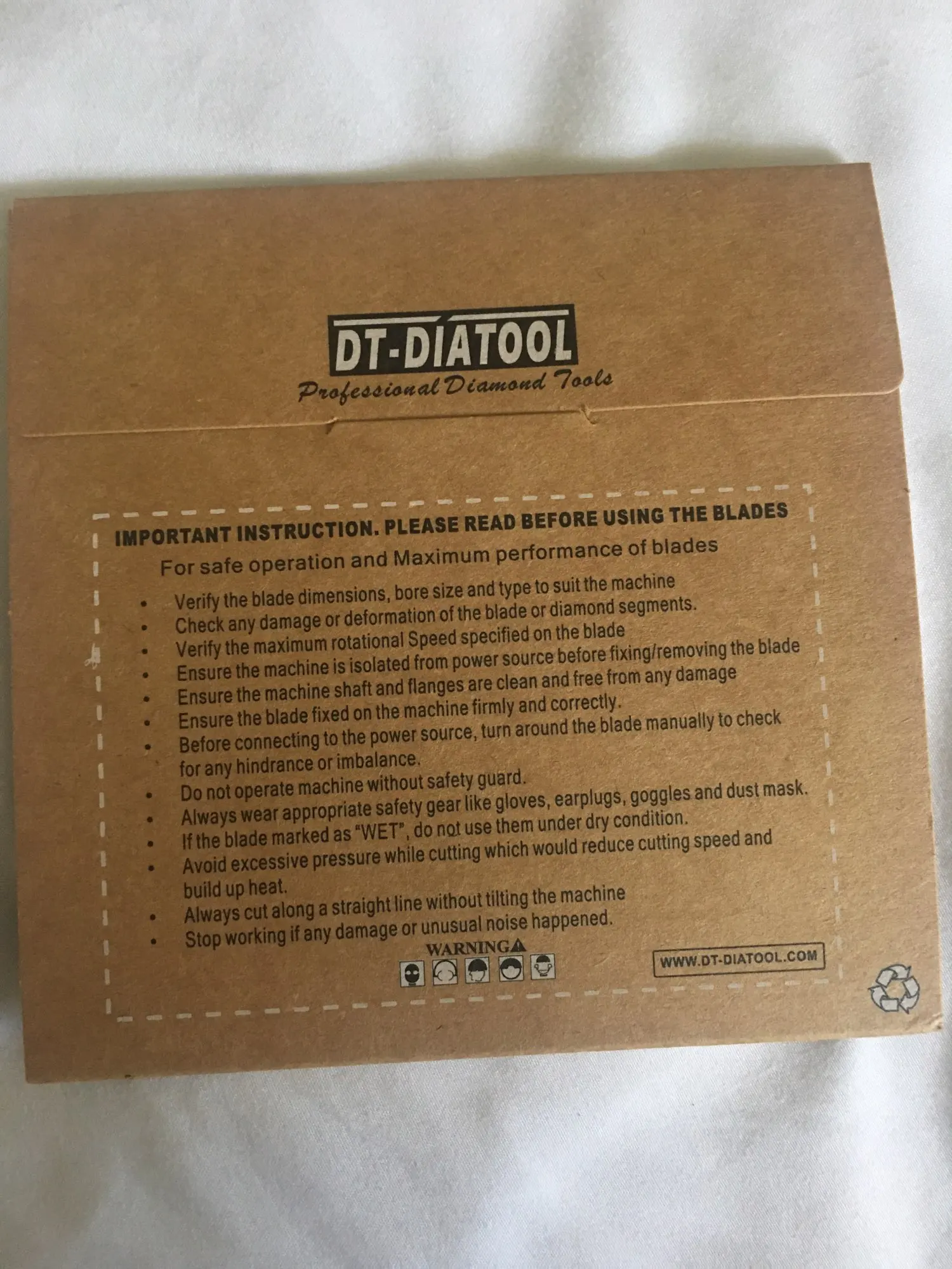 Ref. Бренд:Этот продукт отмечен нашим брендом «DT-DIATOOL». Если вам нужен этот Алмазный диск без нашего бренда, пожалуйста, оставьте нам сообщение. Мы можем отправить вам продукцию без бренда. Мы также предоставляемФирменный сервис по индивидуальному заказу(Если вы заказываете больше 20 штук, мы можем указать ваше фирменное наименование на этих продуктах)