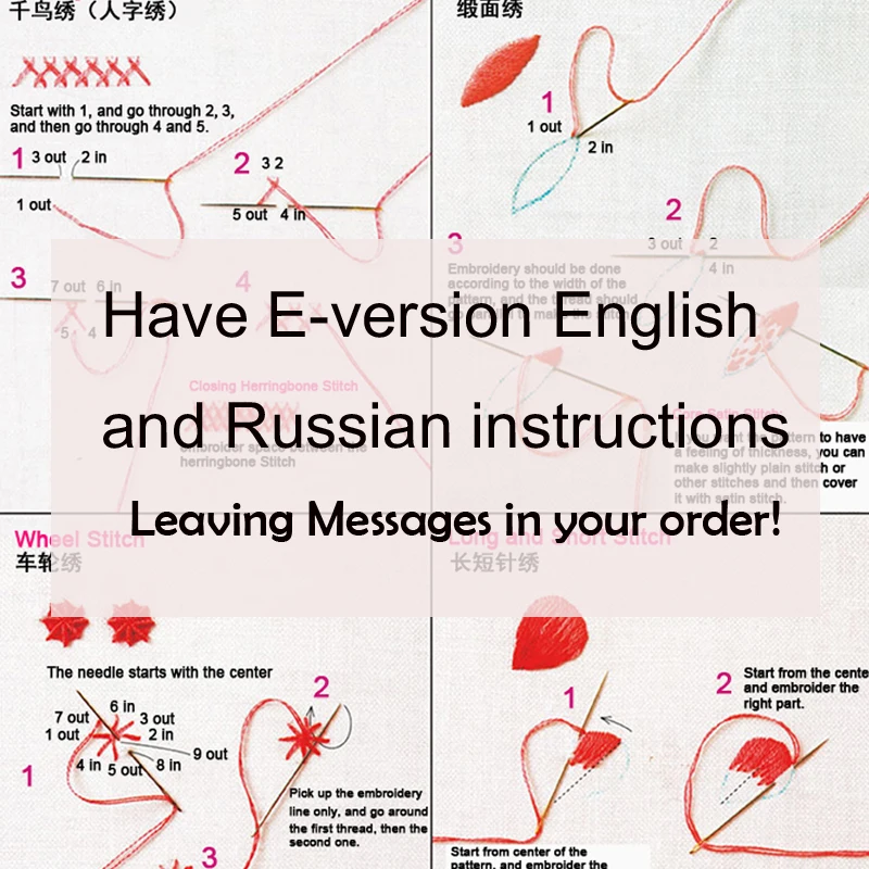 A:Ткань для вышивки * 1, Нить * 1, детальная строчка * 1, игла * 2, (некоторые будут иметь обруч)