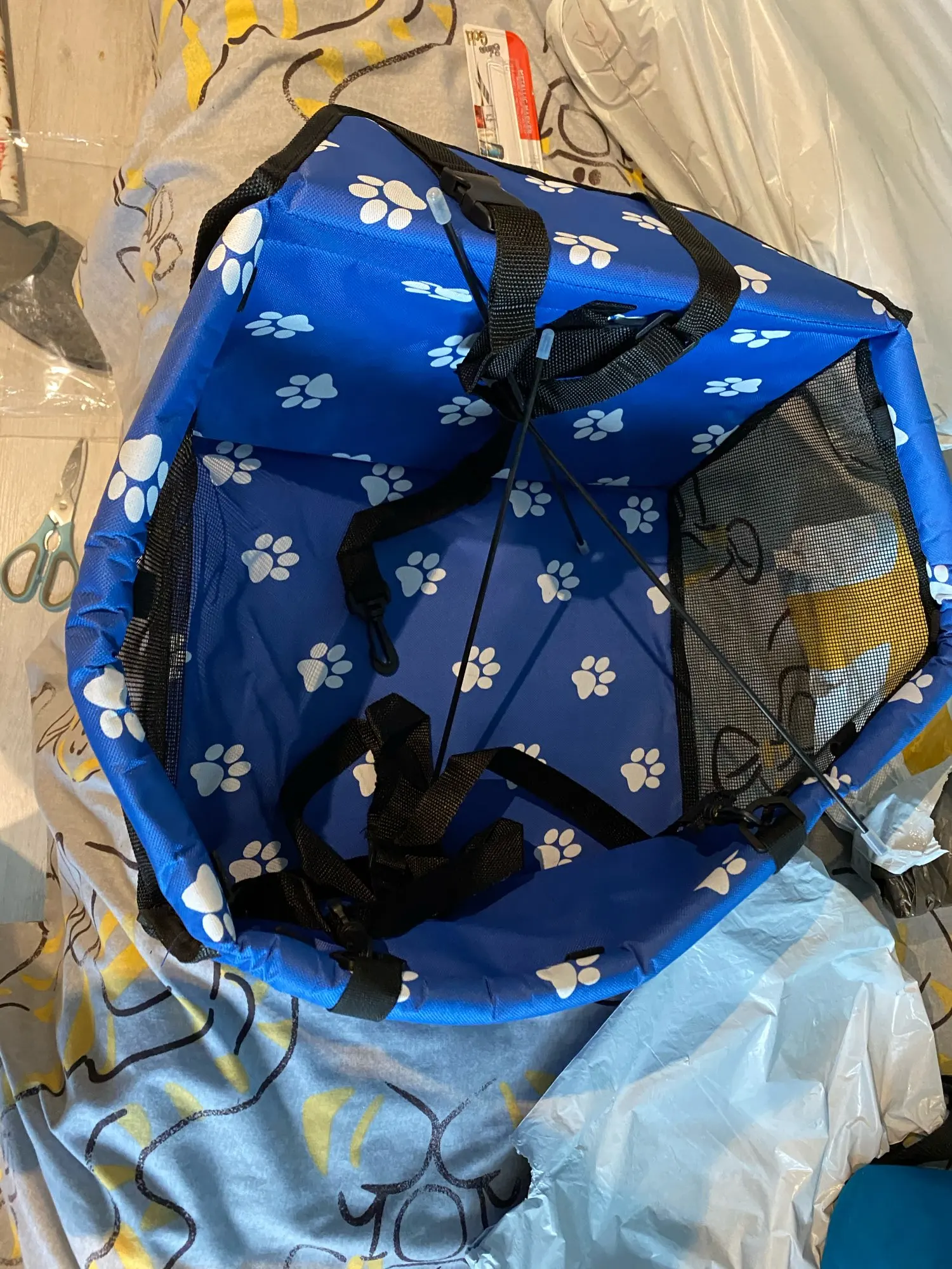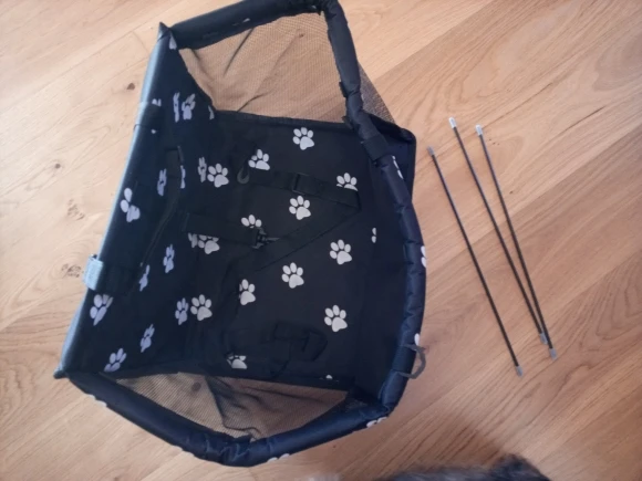 товар полностью соответствует фото и описанию. доставка быстрая, трек-номер отслеживается. размер корзины позволяет сажать в неё взрослого французского бульдога. в комплекте есть 3 спицы для жесткости конструкции. я очень доволен этим товаром и продавцом!