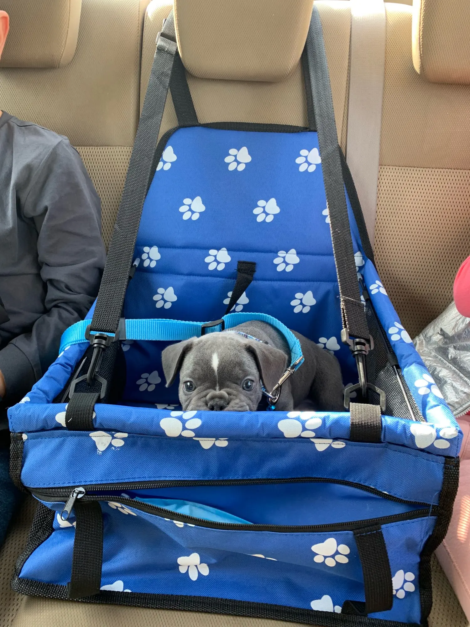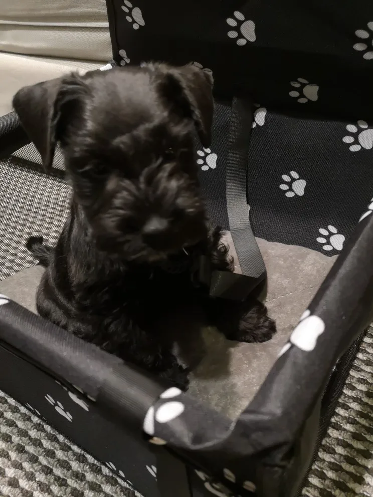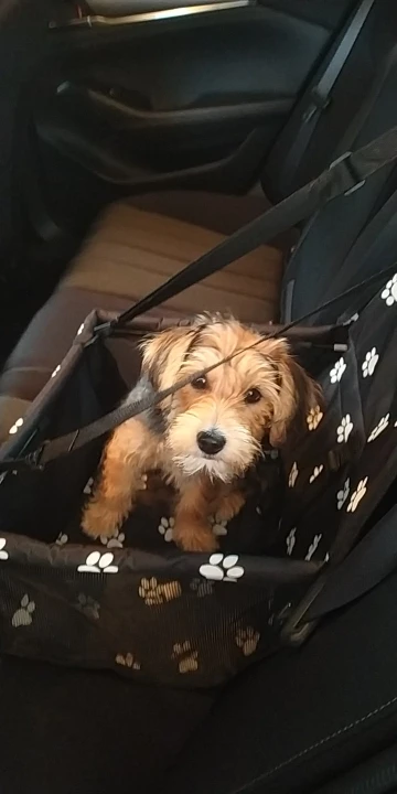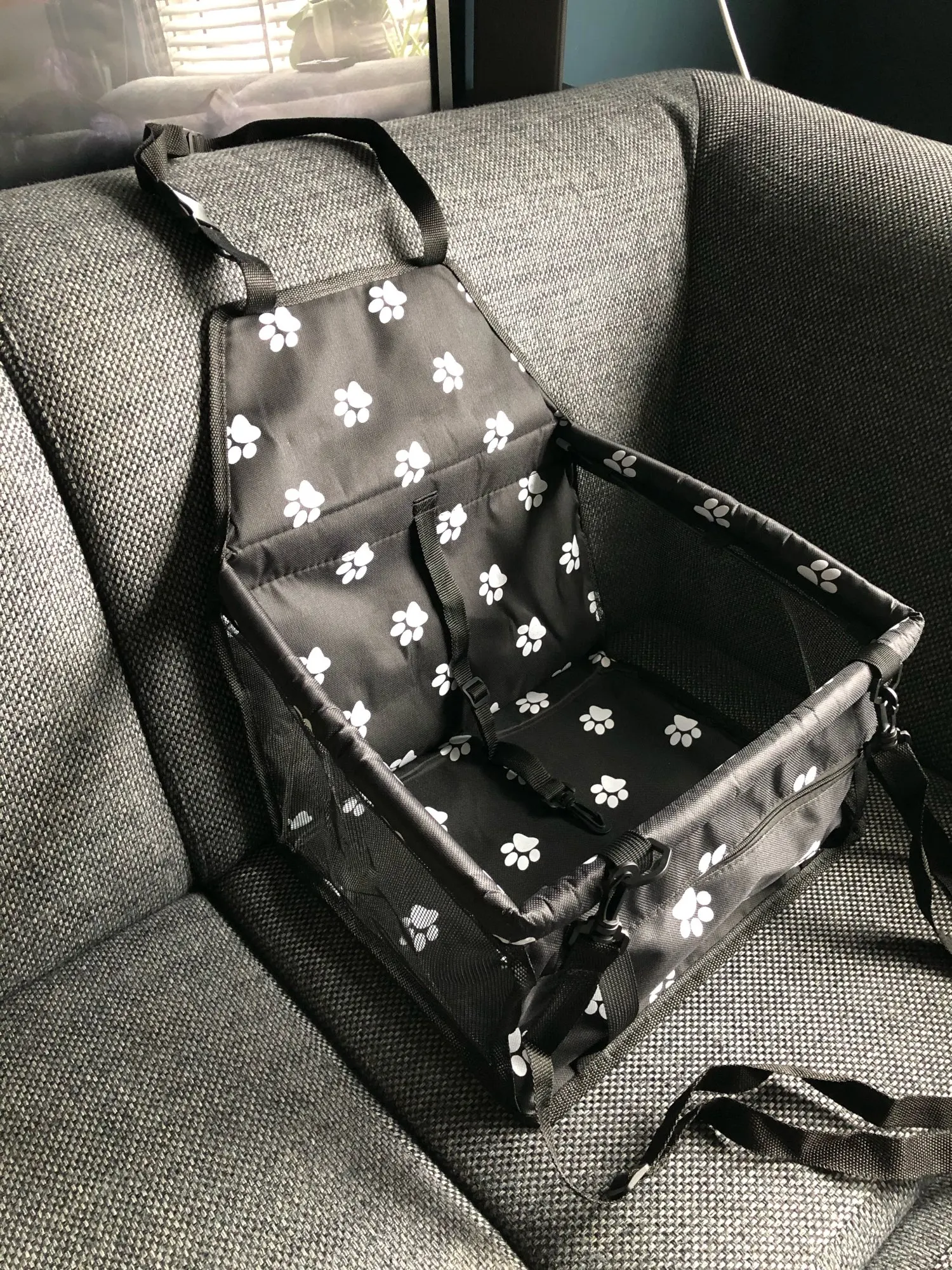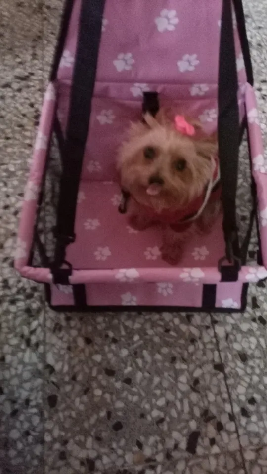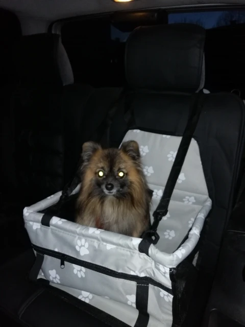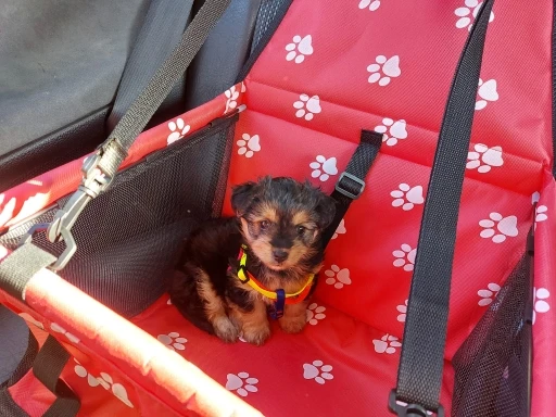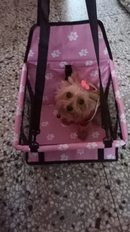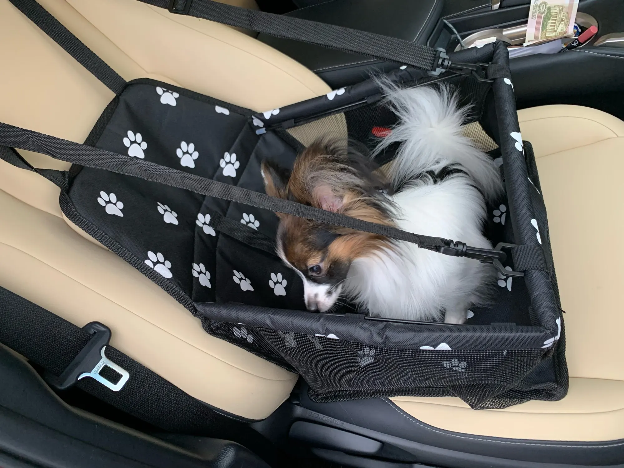 Сиденье полностью соответсвует описанию. Был небольшой запах химии, но очень быстро выветрился. В машине ещё не использовала. Для Йорка 3 кг даже великовато. Зато для зимы можно плед постелить.