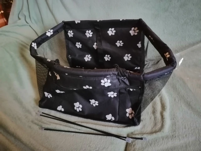 Очень хорошая корзина для машины, но стержни плохо держатся, они остаются затянутыми и сшитыми с небольшим эластичностью, мой Йоркшир, они будут кусать его, и они исчезнут при первой прогулке в машине. Но без стержней это будет похоже на вторую фотографию, это позор, потому что корзина красивая и хорошо сделана, кроме темы стержней
