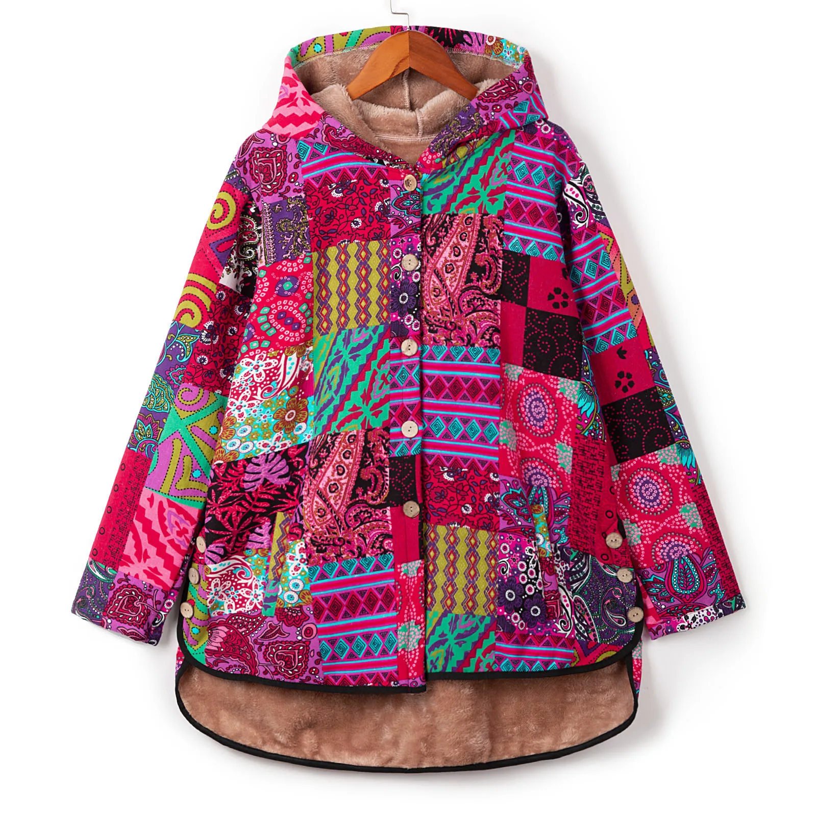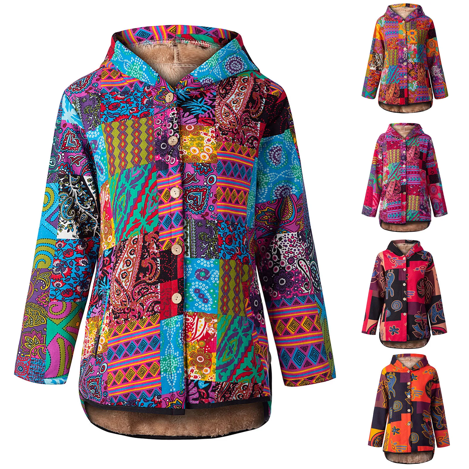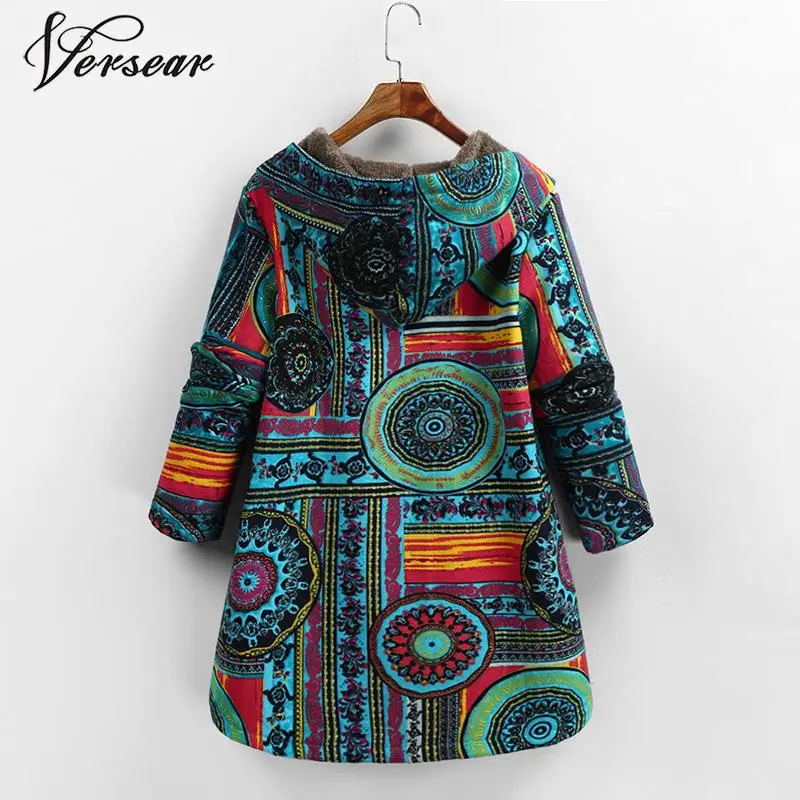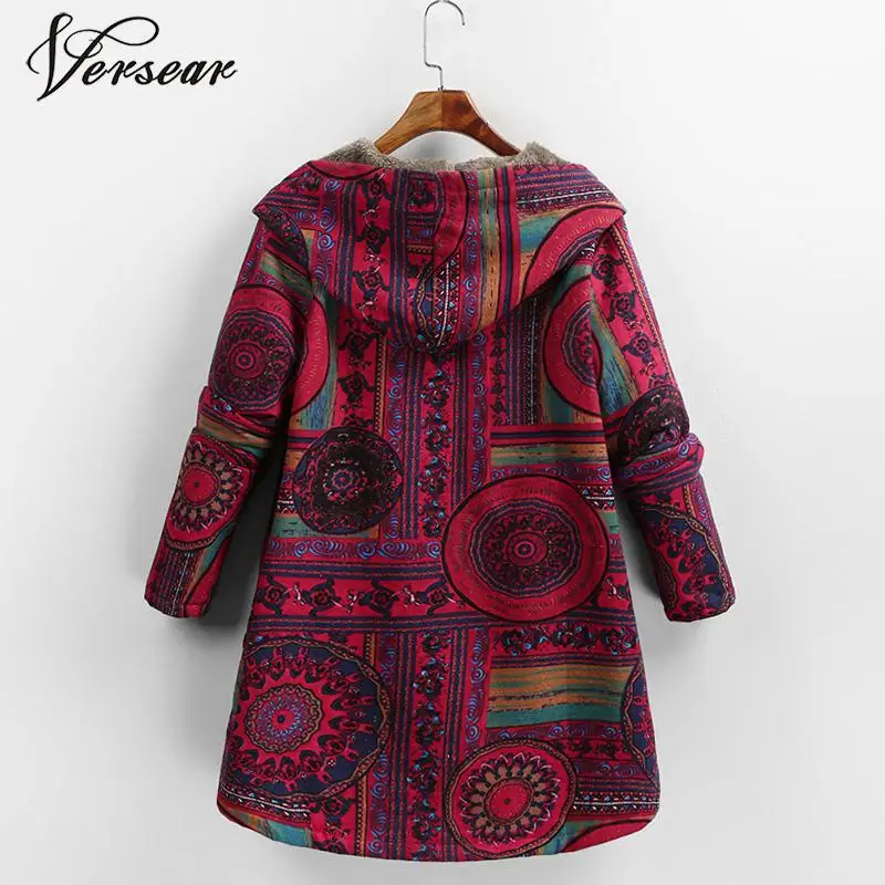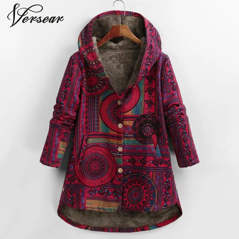 Женская плюшевая куртка Versear, зимняя теплая ветровка с цветочным принтом, с капюшоном и карманами, большие размеры