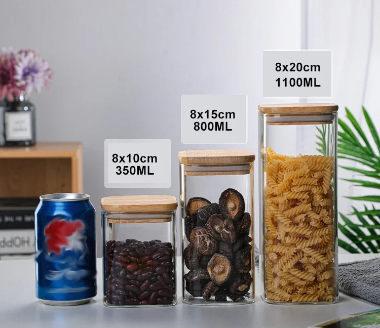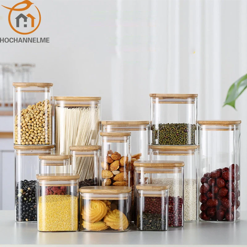 Квадратные герметичные стеклянные банки для хранения специй, кухонная банка для хранения кофейных зерен, каменная банка с крышкой, пищевой контейнер