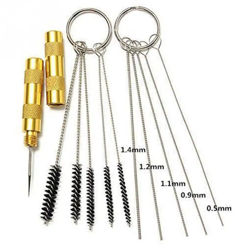 Особенности: Эти иглы сопла идеально подходят для очистки от засорений сушеной краской, это может восстановить ваше сопло обратно в идеальное состояние с тщательным использованием. Необходимый набор аксессуаров для аэрографии. Wi-Fi 5 щетка диаметром от около 2, 2,5, 3,2, 4, 5 мм, различные кисти будет следить за тем, чтобы вы можете тщательно почистить внутреннюю часть холодильника как можно скорее. Отвинтите высушенную краску/мусор, цельнометаллическую конструкцию с удобной ручкой. Крошечные кисти для очистки крошечных тюбиков teensy, аэрограф, распылительные пистолеты, оборудование для тату, насадки и т. д. Технические характеристики: Материал: металл Золотой цвет длина иглы: прибл. 80 мм Длина иглы и кисти: около 130 мм Посылка включает в себя: 1 Игла золотого цвета 5 игл из нержавеющей стали 5 х кисти