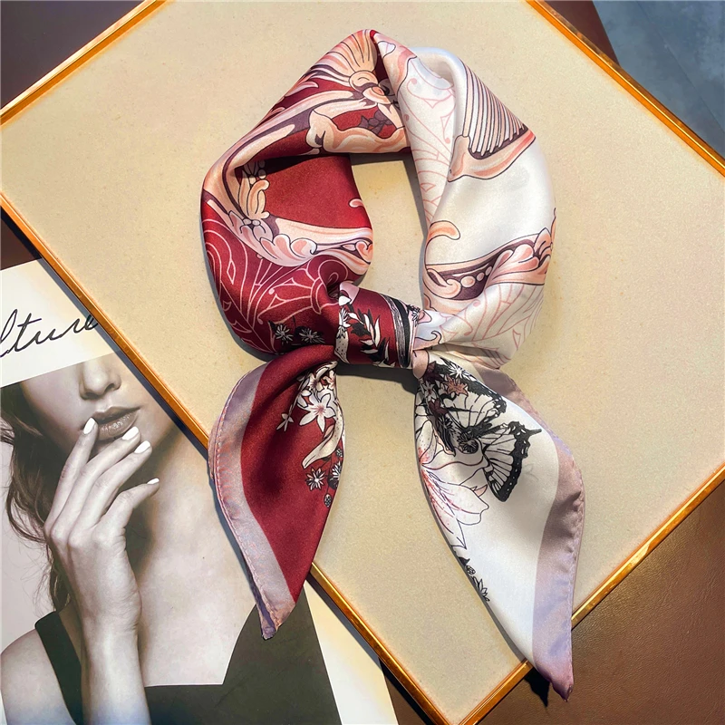 Роскошный Шелковый Атласный квадратный шарф 2022, Женская Весенняя шаль с принтом 70 см, шейный платок, женский платок, бандана, хиджаб