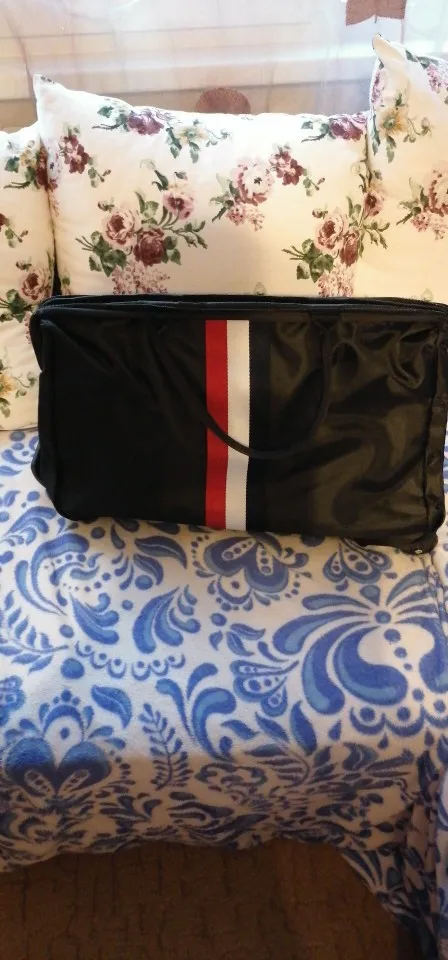 Максимально быстрая доставка товар неплохой но полоска криво пришита (небольшой дефект) сначала заказала с белыми полосами потом передумала и написала продавцу чтобы с красными положил сумку, просьбу выполнил спасибо товар хороший. Очень удобный