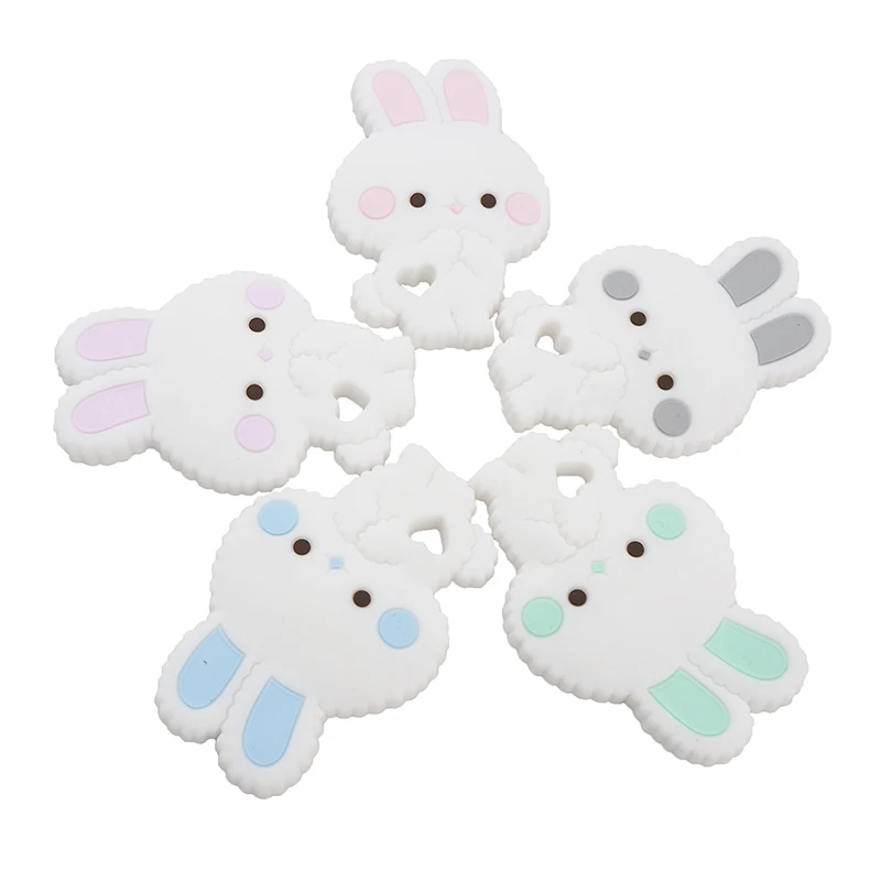 Chenkai, 10 шт., без бисфенола А, силиконовые аксессуары, милые зверушки, кролики, прорезыватели для самостоятельного изготовления, зажим для соски, соски, цепочка для соски