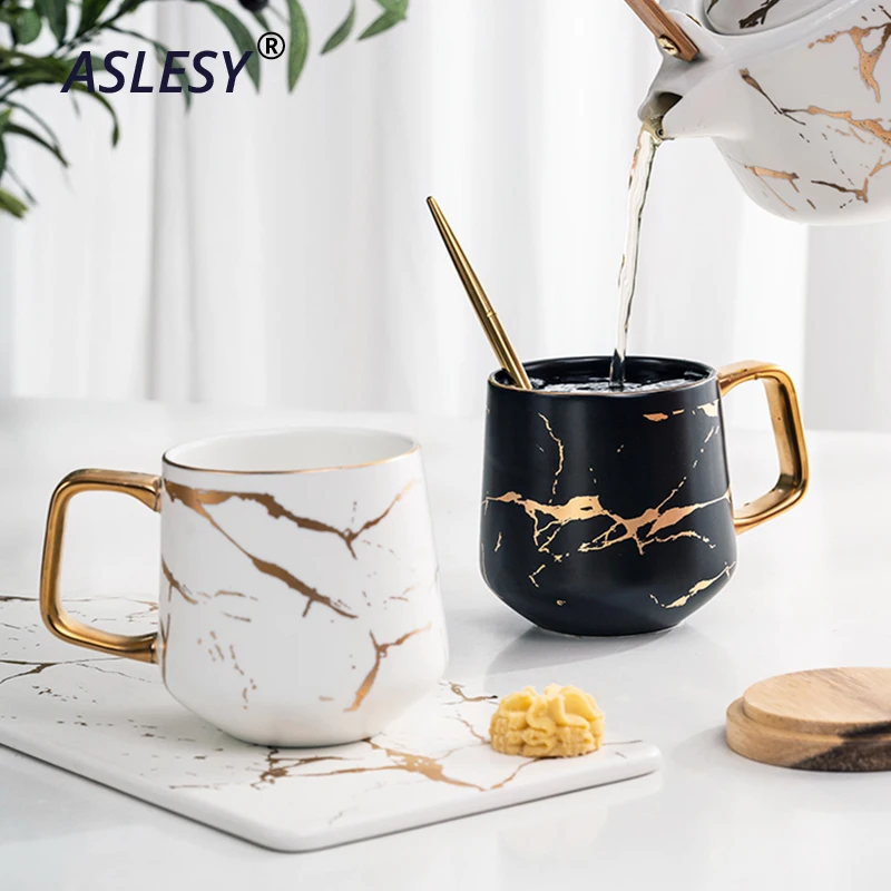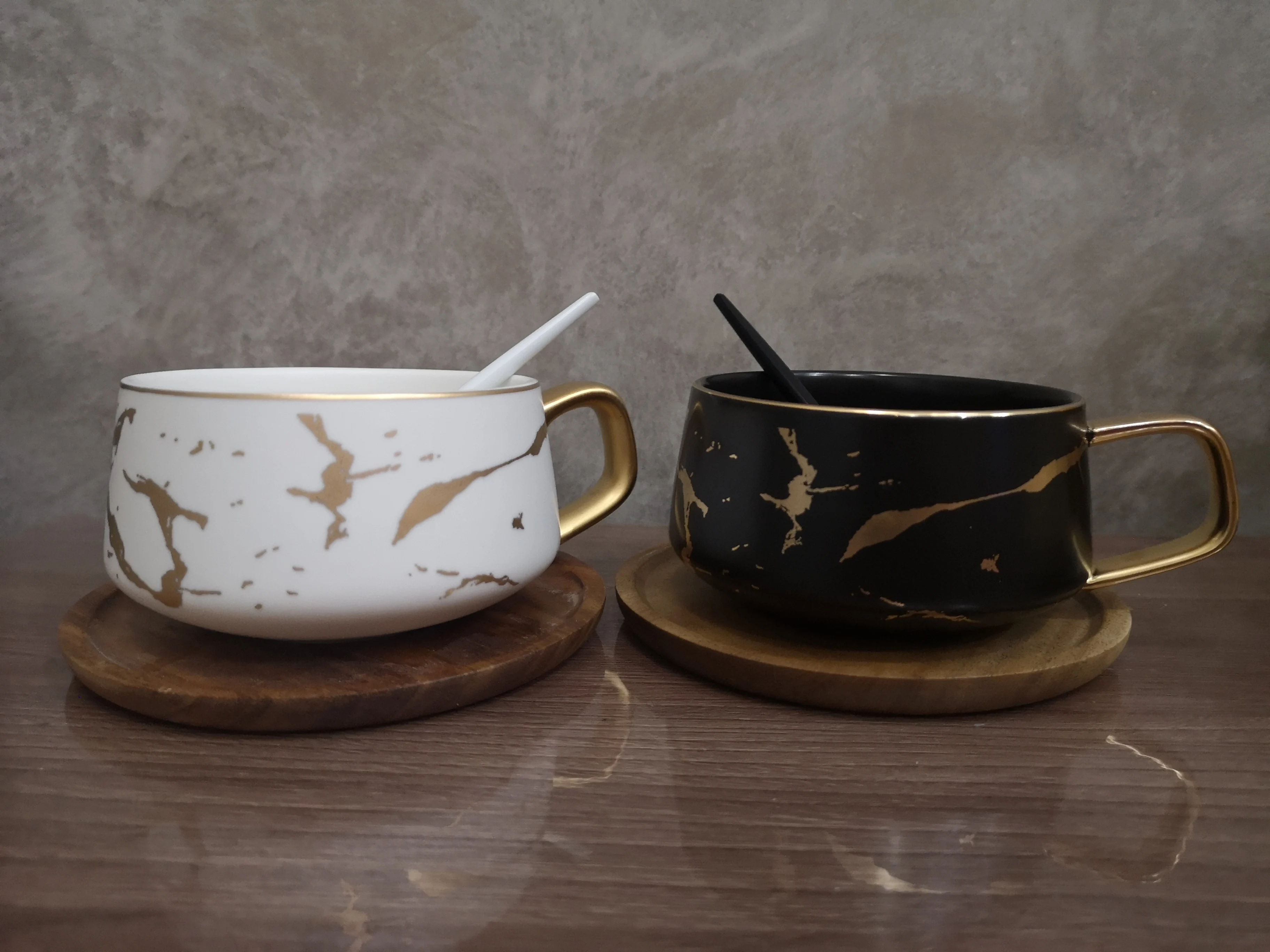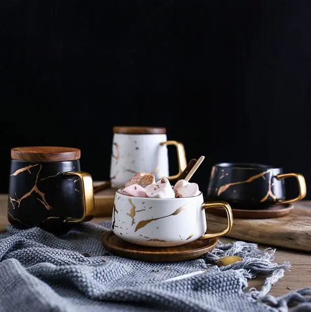 Мраморные кофейные кружки в скандинавском стиле, матовые Роскошные чашки для воды, кафе, чая, молока, керамическая чашка для конденсации кофе, блюдца, набор с ложкой