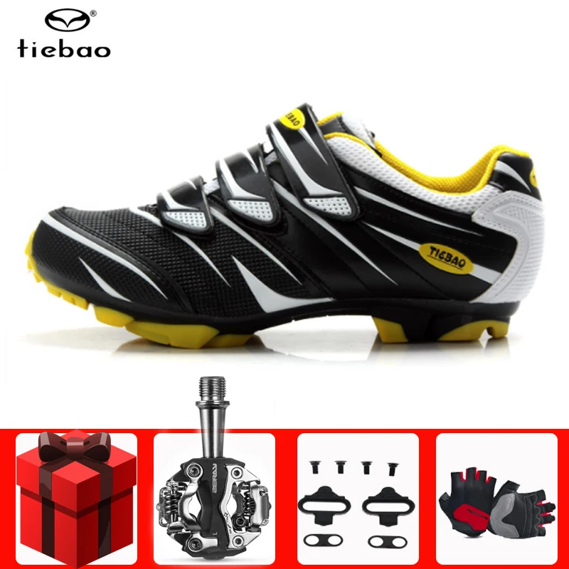 Велосипедная обувь Tiebao для горных велосипедов, набор кроссовок с педалями SPD, самоблокирующаяся спортивная обувь для езды на велосипеде