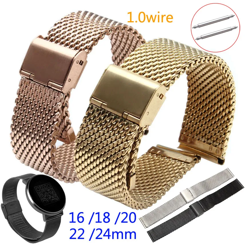 Запасной ремешок для часов 16 мм, 18 мм, 20 мм, 22 мм, 24 мм, из нержавеющей стали, Миланская петля, ремешок для часов, браслет с складной пряжкой и съемными шпильками