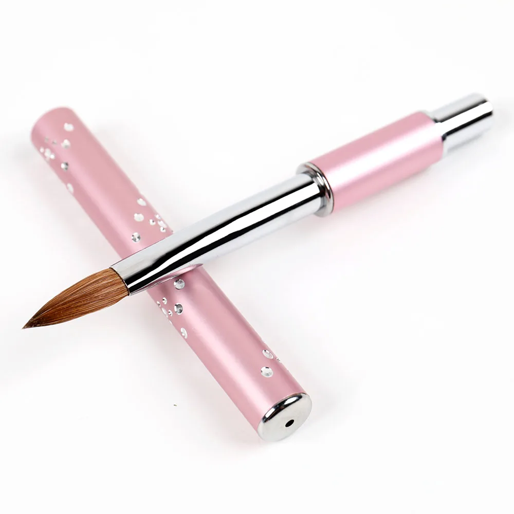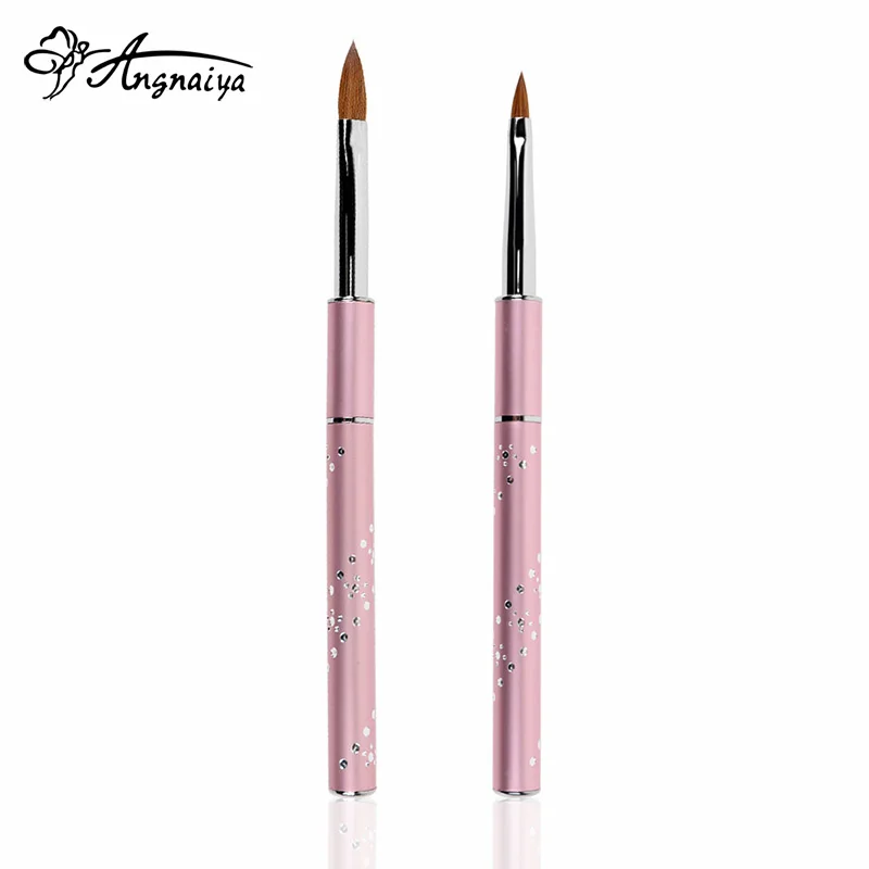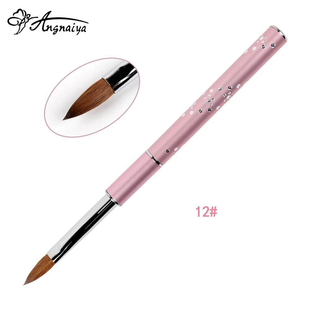 ANGNYA 1 шт. #12 Kolinsky СОБОЛЬ акриловая ручка с кисточкой из полимерного материала розовая металлическая ручка кристалл акриловый маникюр салон Живопись ручка дизайн ногтей кисть