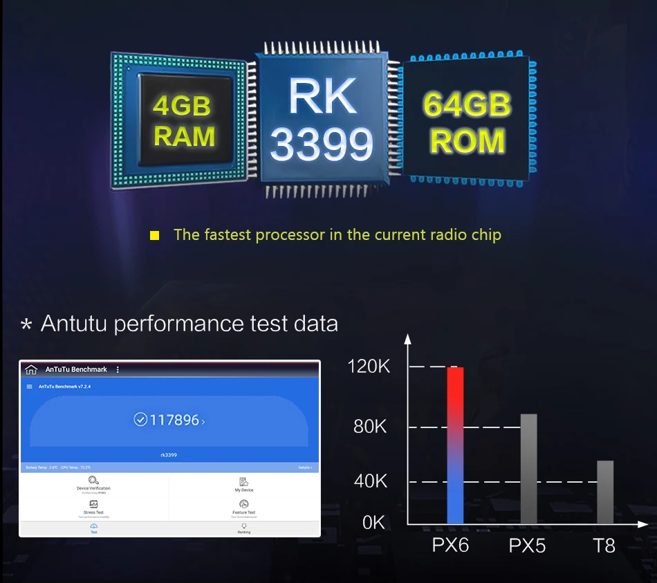 Тест версии 4G + 64G, ANTUTU может достигать 117896Это очень большое количествоДля автомобиля мультимедийный DVD плеер