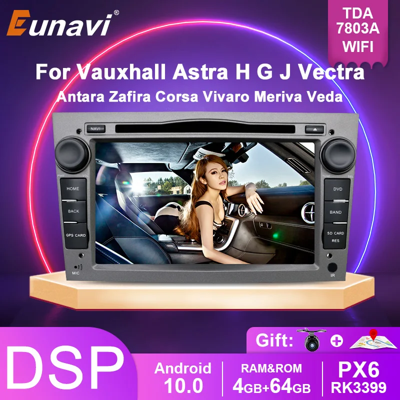 Автомобильный DVD-плеер Eunavi, 2 Din, Android 9, для Opel Astra Vectra Antara Zafira Corsa 2din, GPS, Wi-Fi, Bluetooth, Восьмиядерный 1024*600