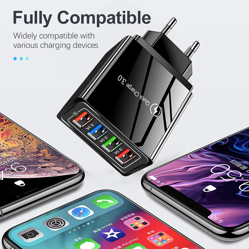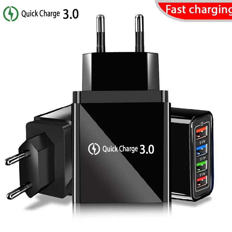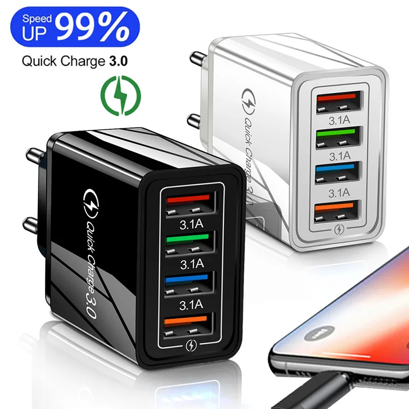 Быстрая зарядка 3,0, зарядное устройство USB с вилкой Стандарта ЕССША, 4 порта, настенное зарядное устройство для iphone 11, 12, Huawei, Xiaomi, Samsung, быстрая зарядка