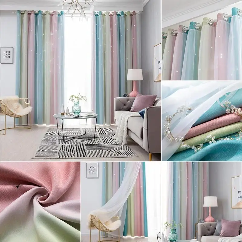 Занавеска для окна, с ажурными звездами, радужного цвета, для девочек, детей, плотные шторы на окнах спальни, занавеска, украшение для дома