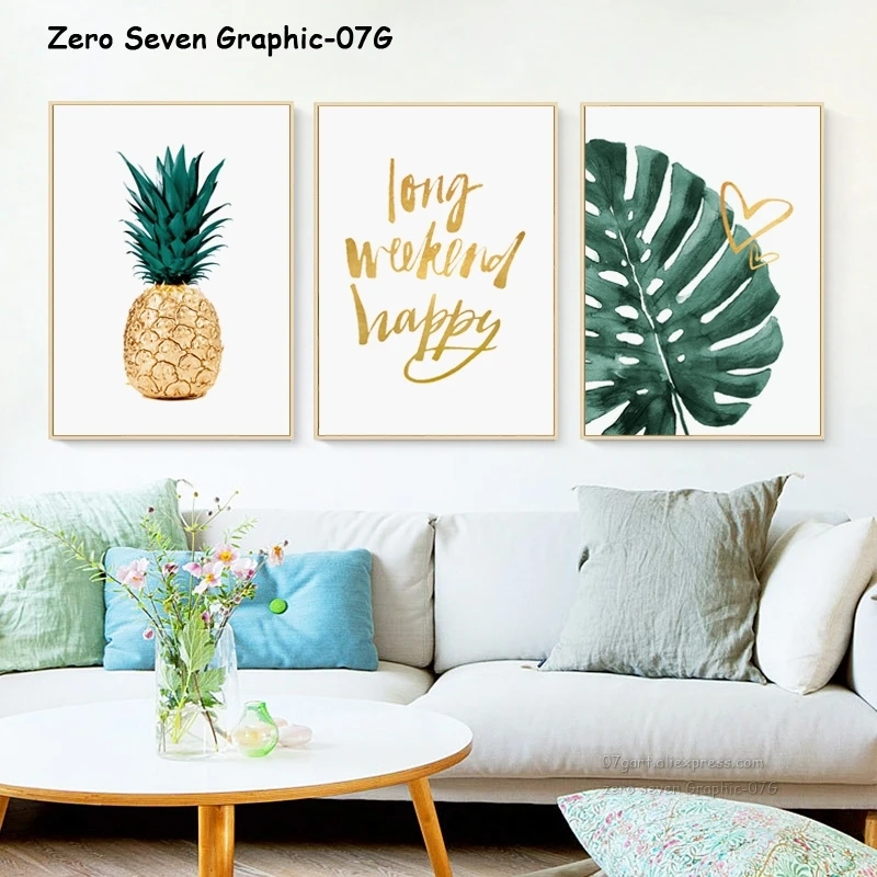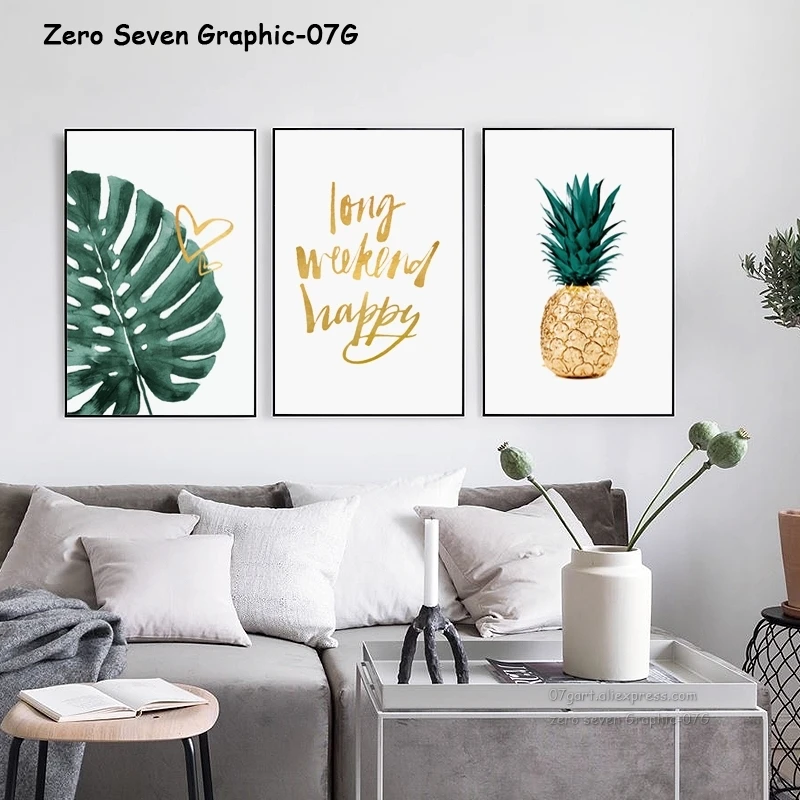 Модный настенный художественный декор, контрастный цвет, золотой ананас, водяной цвет, Золотая цитата, холст, постер с принтом для гостиной