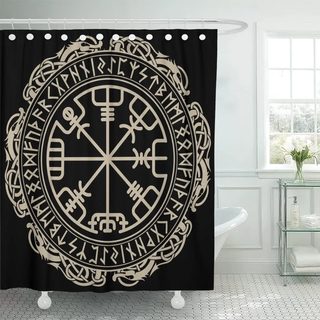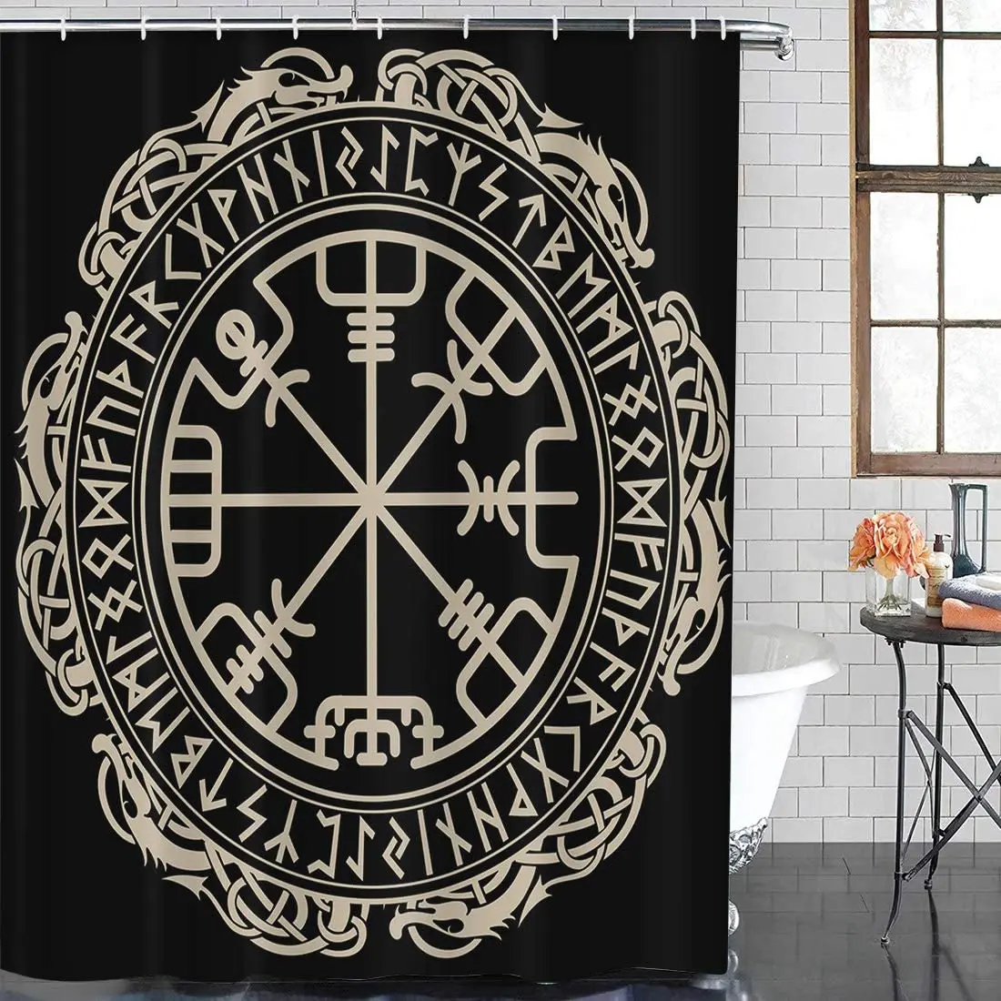 Волшебный Рунический компас викингов, круглая душевая занавеска вегвизир из водонепроницаемой полиэфирной ткани, Комплект 72x78 дюймов с крючками