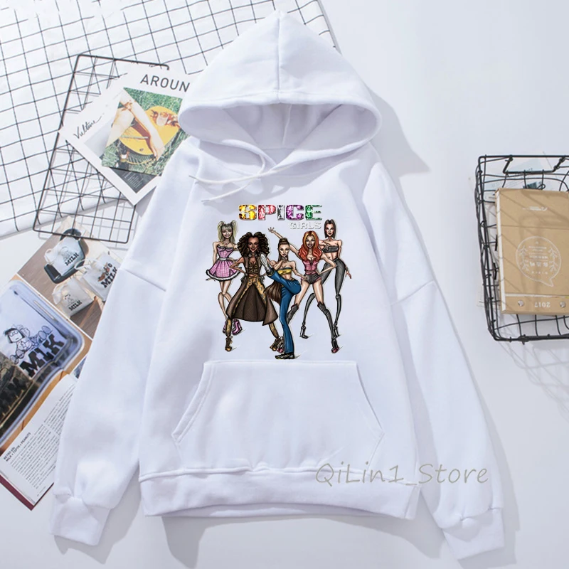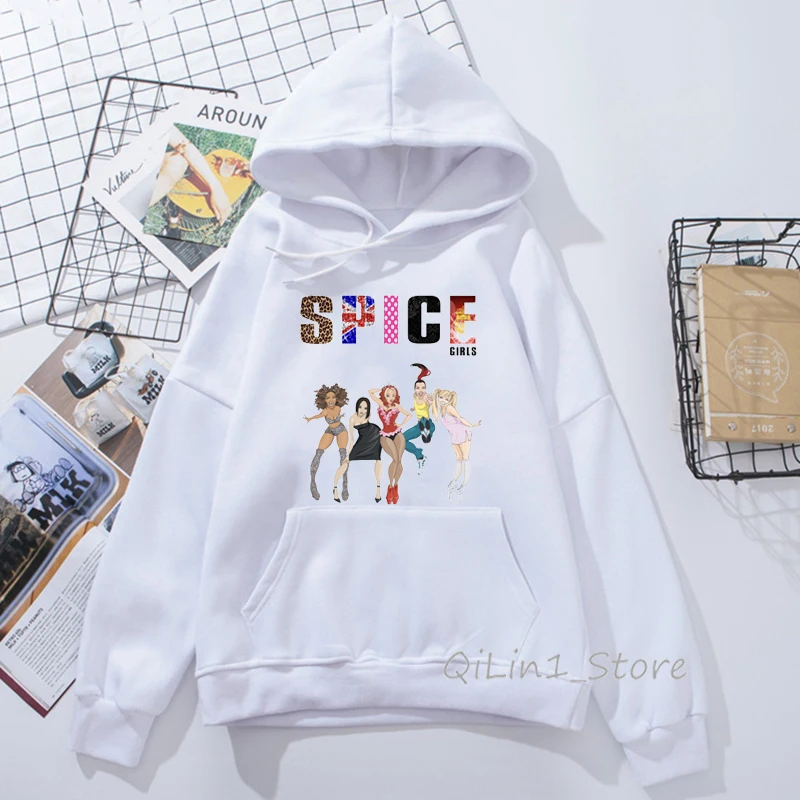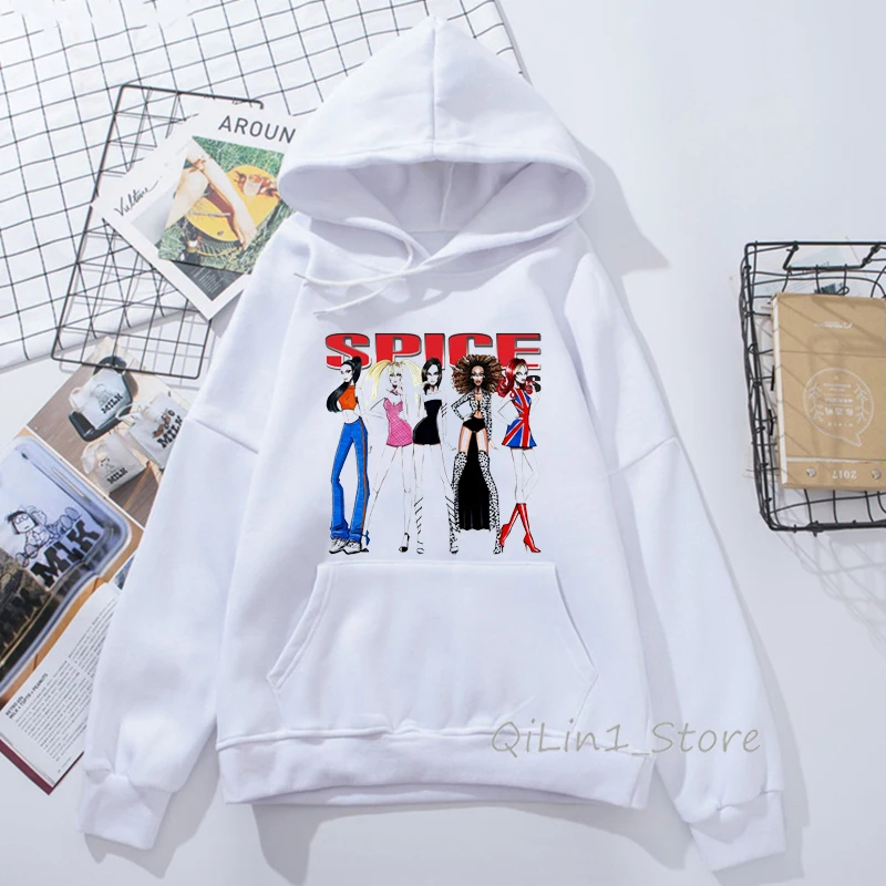 Толстовка с капюшоном для девочек, Свитшот в винтажном стиле 90-х годов, с принтом в виде ленты специй, уличная одежда