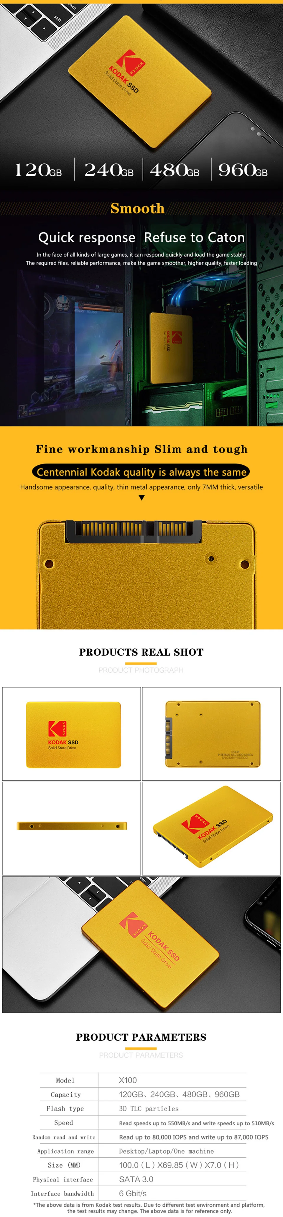 Жесткий диск KODAK X100 SSD 128 ГБ, внутренний SSD 240 ГБ, жесткий диск для ноутбука 480 ГБ 960 ГБ SATA SSD 2,5 ГБ