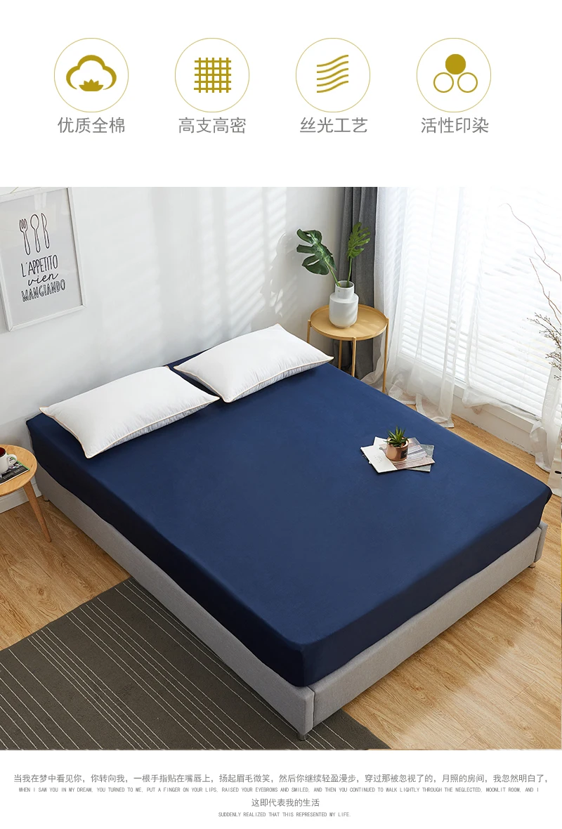 Простыня однотонная хлопковая с резинкой, покрывало для кровати с 4 углами, нескользящий наматрасник 90x190 180x200, 1 шт.