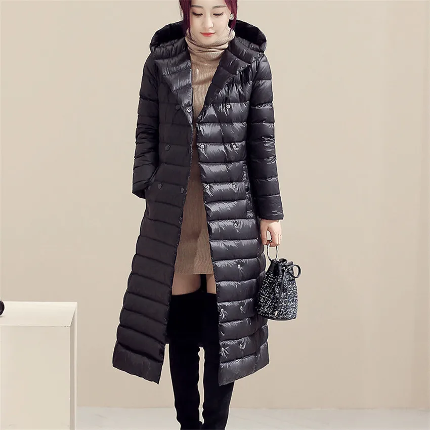 Ультрадлинный женский пуховик с капюшоном, ультра-светильник, очень...