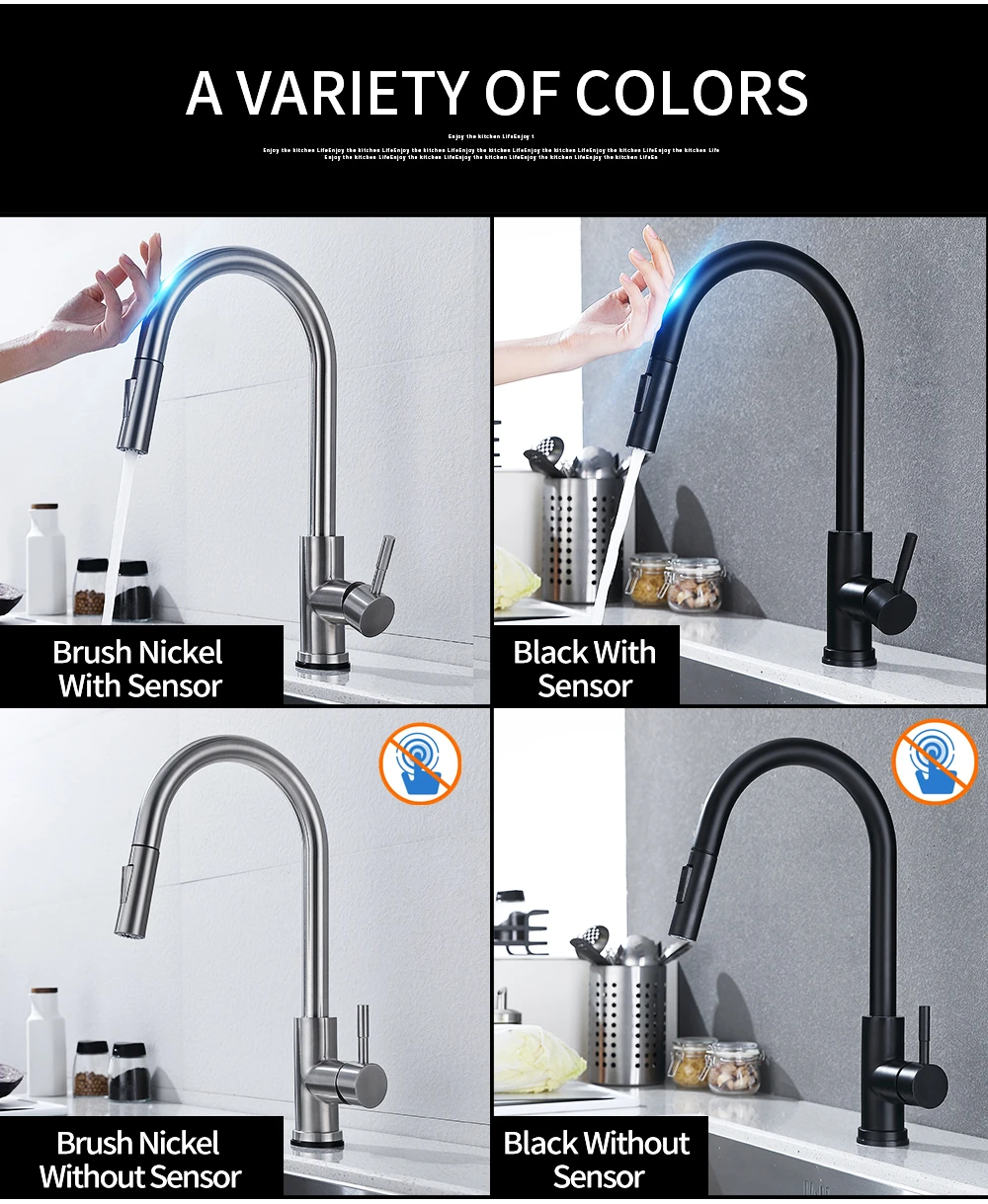 Выдвижной черный датчик , смесители кухни из нержавеющей стали , умный индукционный смешанный кран с сенсорным управлением, кран для раковины, Смеситель для кухни Смесь горячей и холодной воды