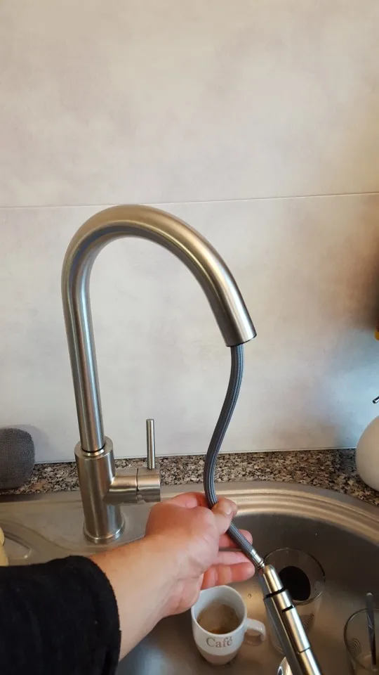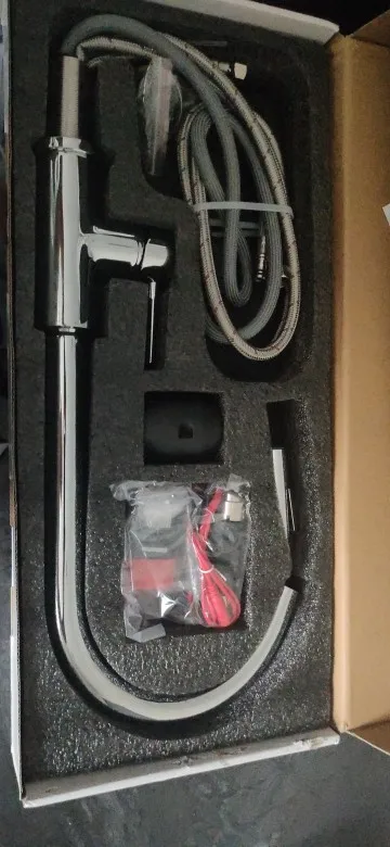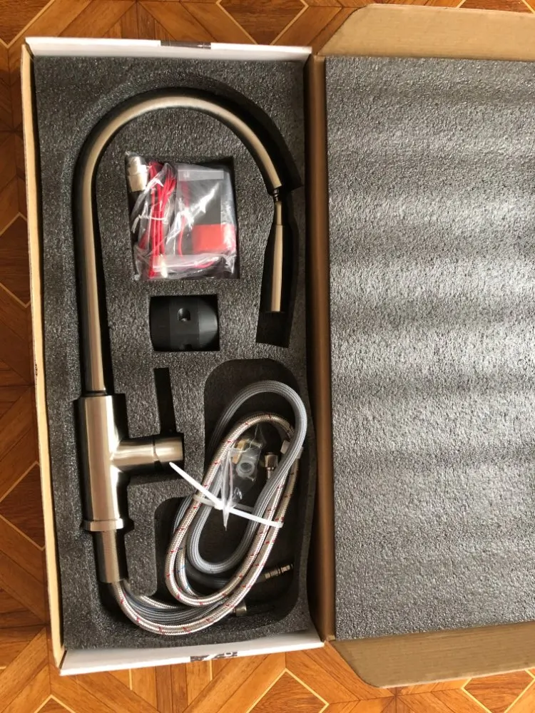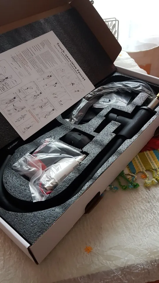 Очень хорошо защищен в красивой коробке. .. Отлично смотрится! Работает очень хорошо! Я надеюсь на долгое время...! Прикосновение просто в верхней части! Тренируйте 2 струи и расширение для очистки умывальников. .. Спасибо!