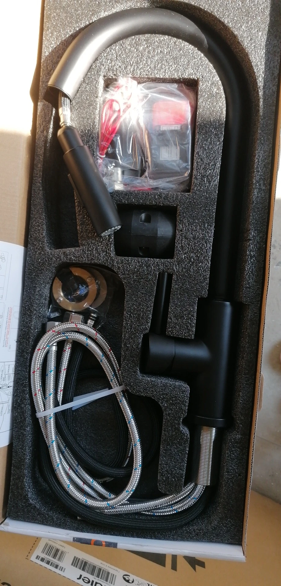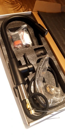 Кран ехал 10 дней по рф, до ростова. Приехал без повреждений, упакован норм. Коробка весом 2,7кг. На ощупь кран приятный, черный и матовый. Комплект весь, инструкция. Смонтировал нормально
