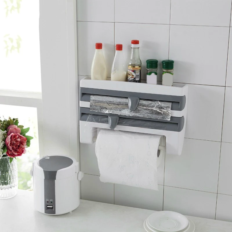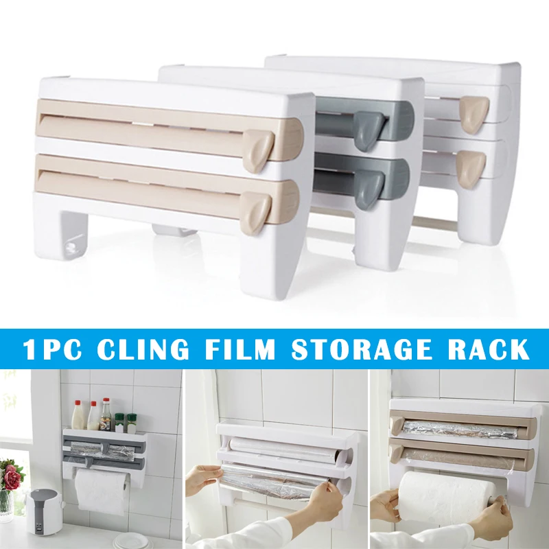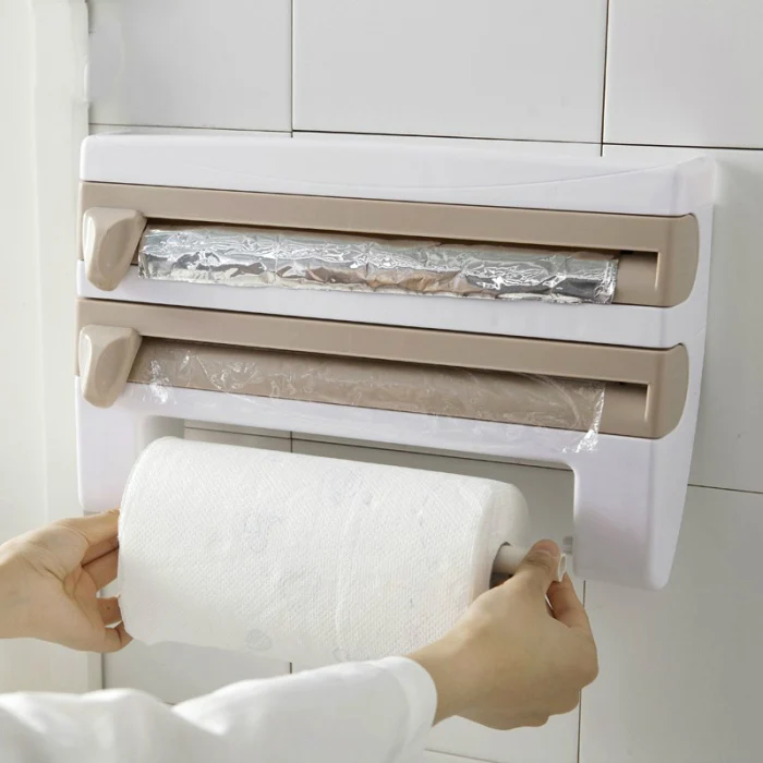 Настенный диспенсер для рулонов горячая Распродажа, кухонный стеллаж для хранения пленки, с резаком для ремня L9 #2