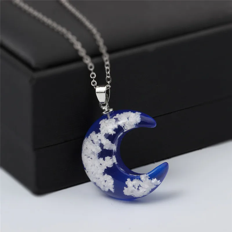 Ожерелье-кулон для женщин и девушек, модное колье с подвеской из смолы под голубое небо, облако, луна, круглый шар, длинная цепочка для свитера, Ювелирное Украшение в подарок