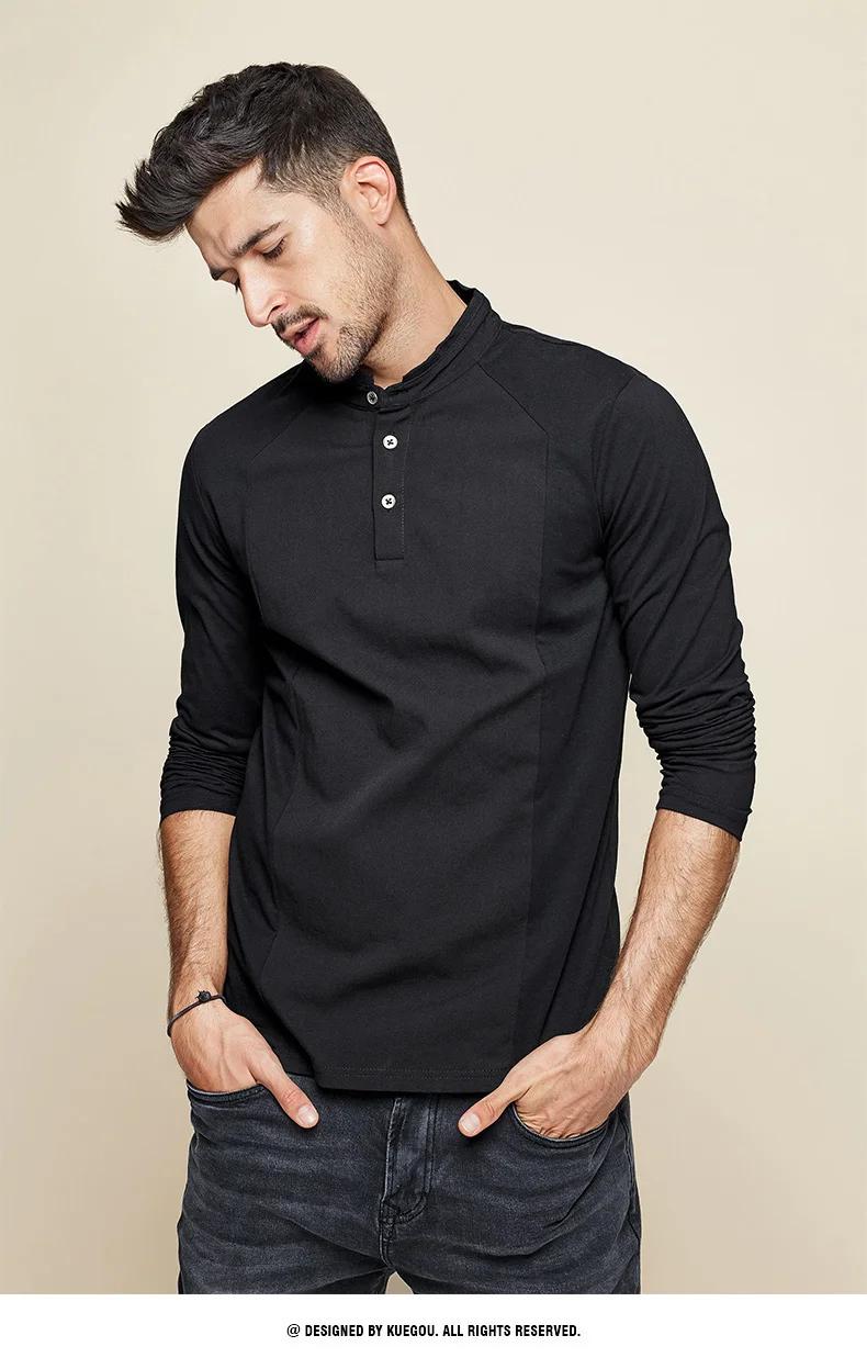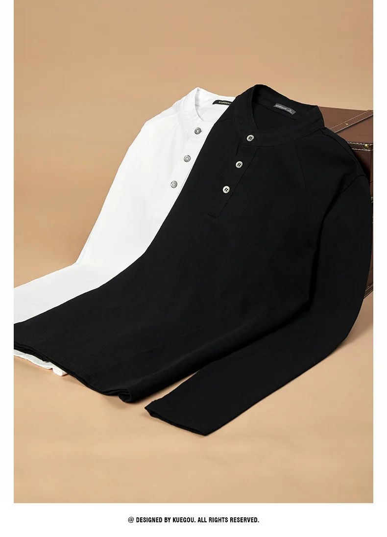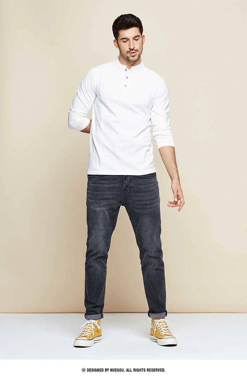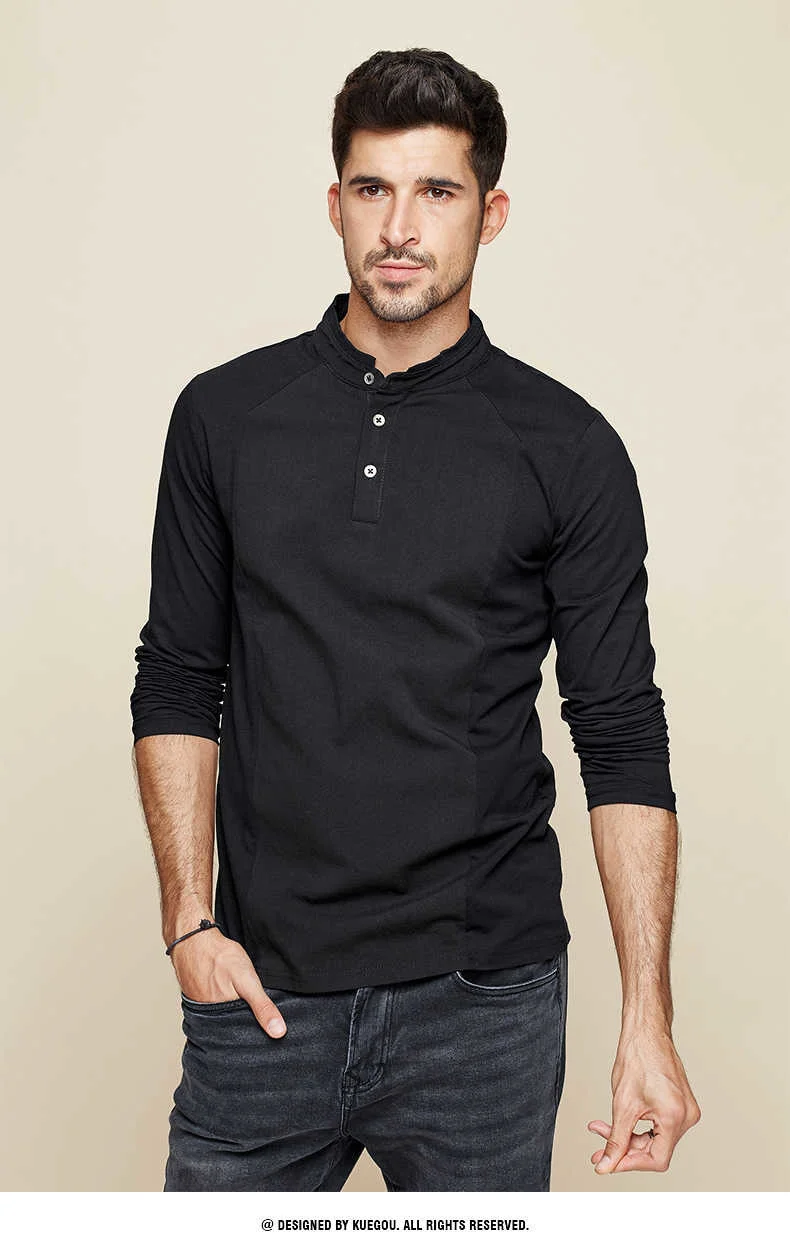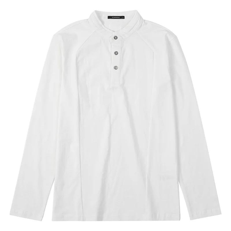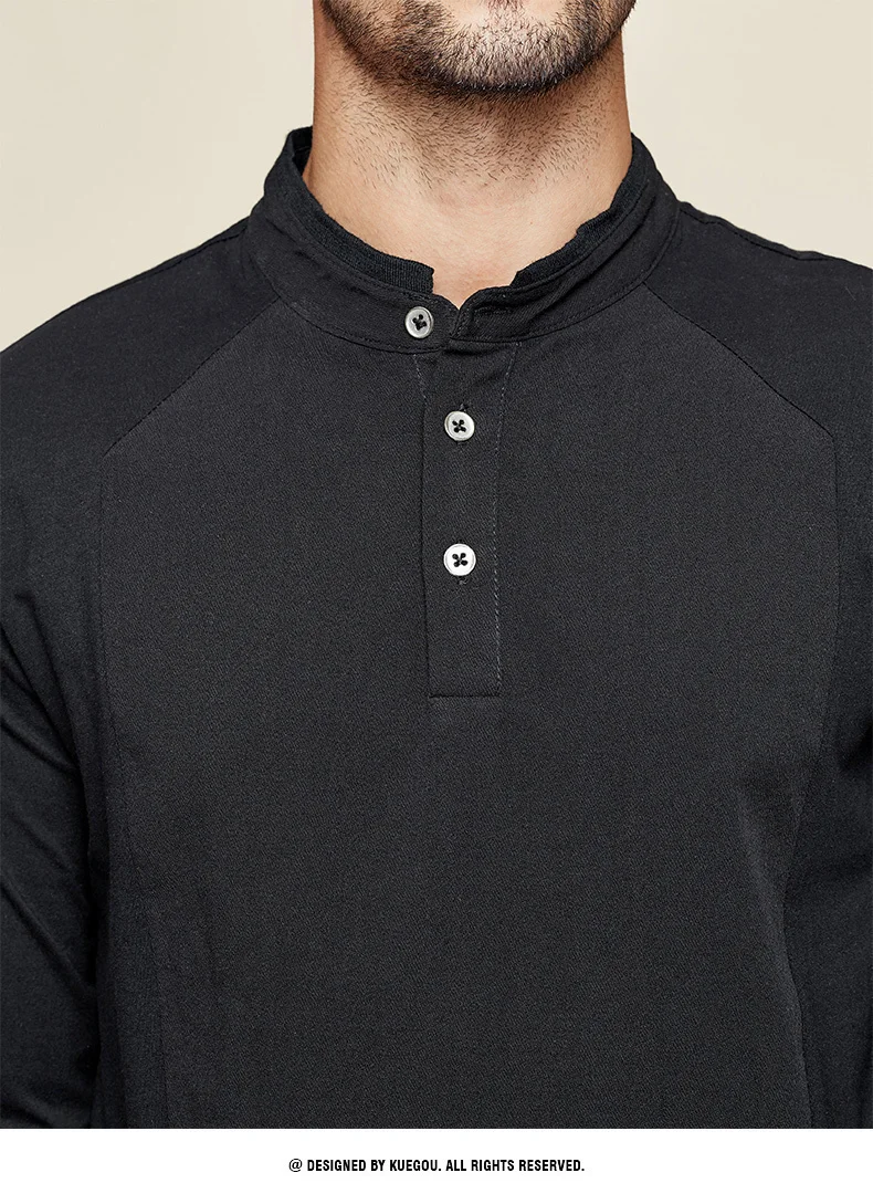 KUEGOU 2022 Весенняя хлопковая Простая белая футболка с пуговицами Мужская футболка брендовая футболка с длинными рукавами Мужская одежда размера плюс 1306