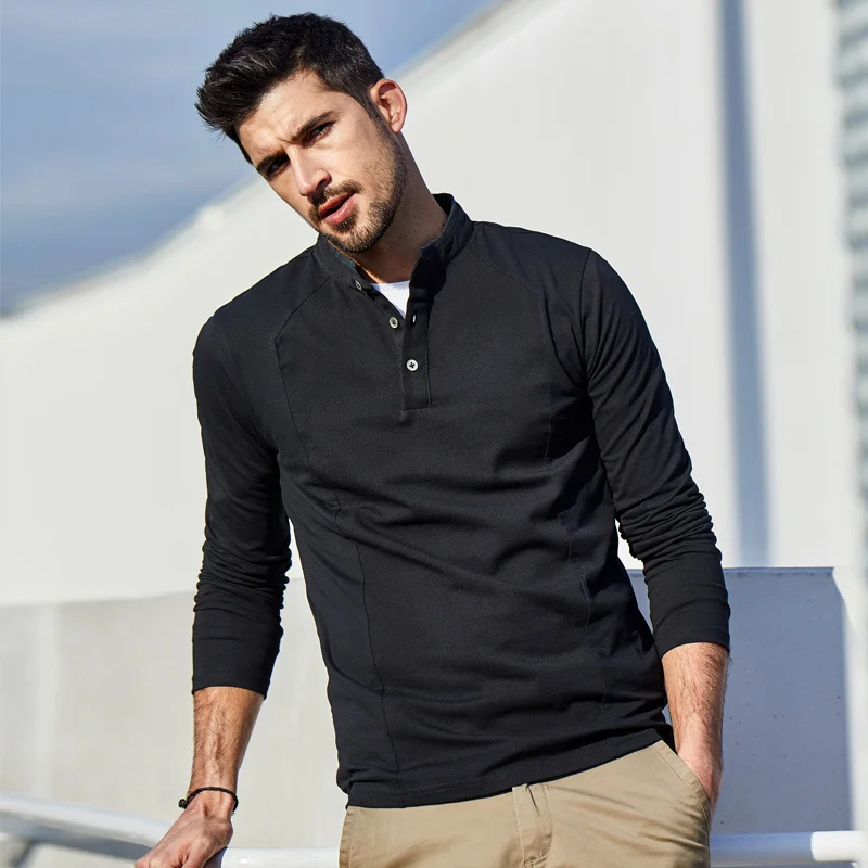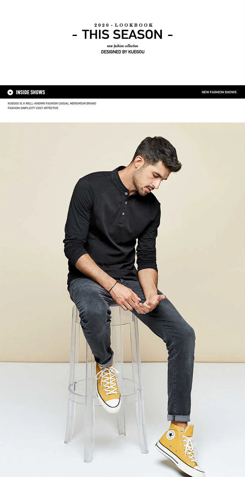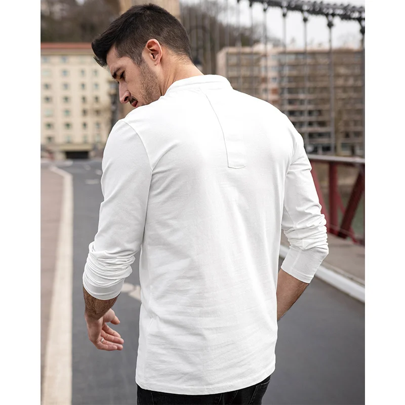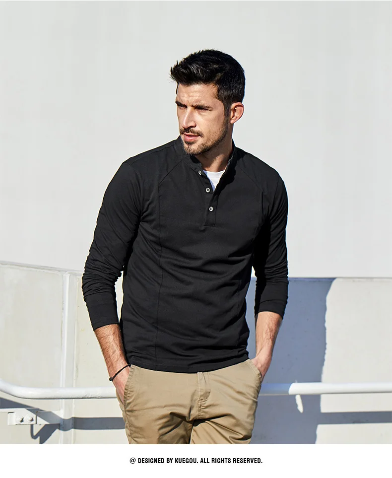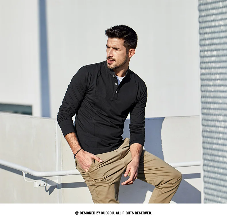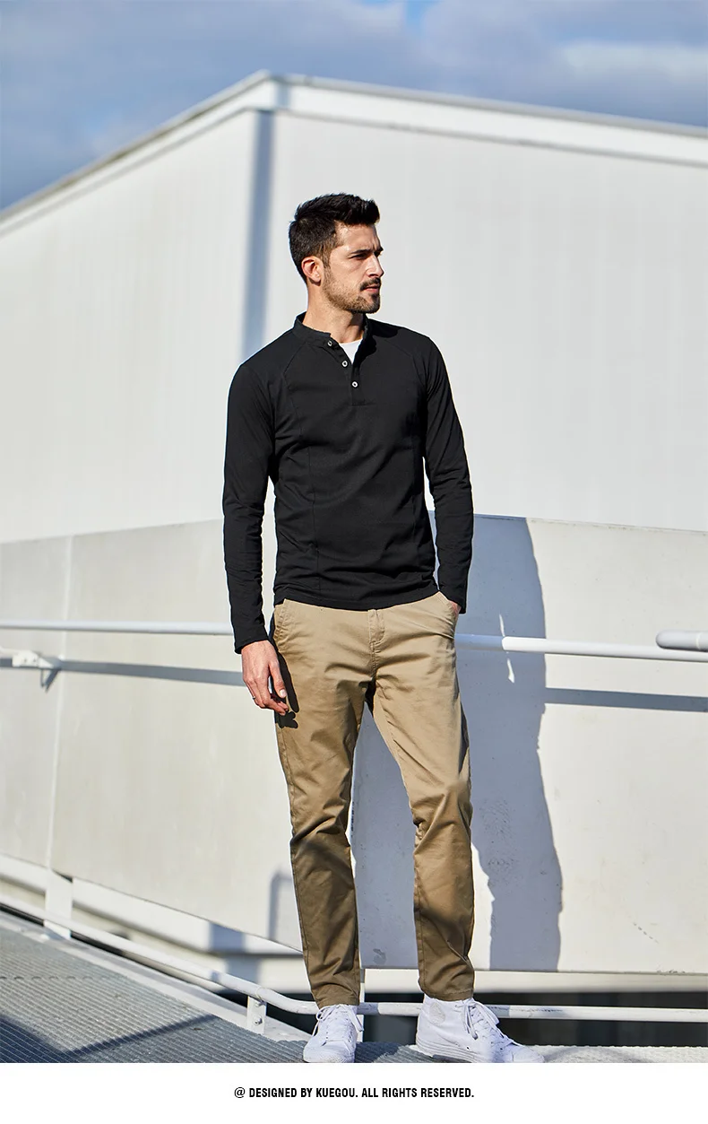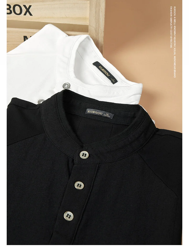 KUEGOU 2022 Весенняя хлопковая Простая белая футболка с пуговицами Мужская футболка брендовая футболка с длинными рукавами Мужская одежда размера плюс 1306