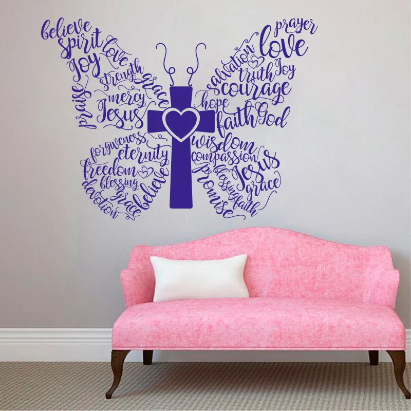 Большая христианская Бабочка Наклейка Настенная Слова спальня гостиная Библия четки цитаты Настенная Наклейка с животными кухня винил домашний декор